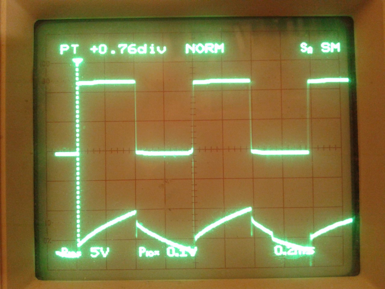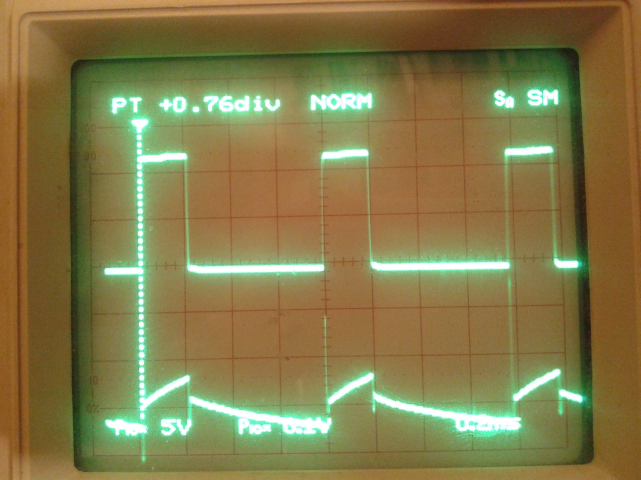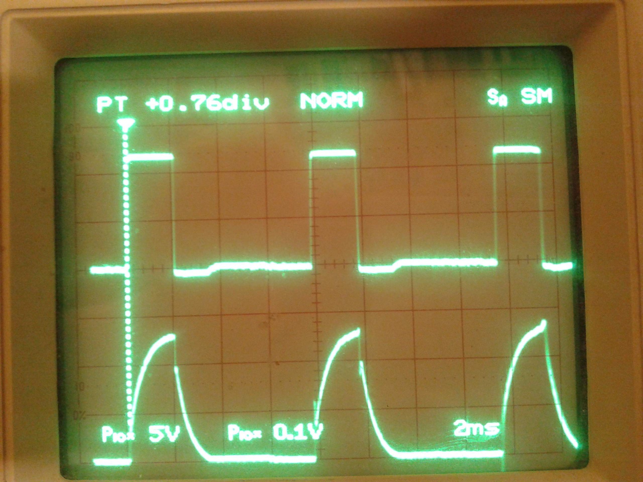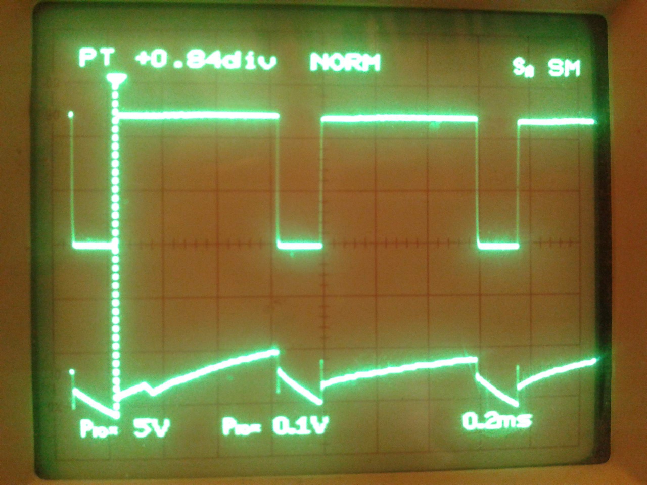 Négyszögjel esetén az az idő, amikor a kondenzátor éppen kisül, nagyon rövid, gyakorlatilag az egyik polaritástól a másikra való átváltás ideje, így elég kis kondenzátor esetén is folyamatosan megmarad a "csúcsérték".