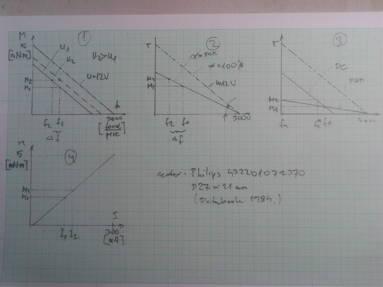 Az 1. rajzon egy egyenáramú, vasmagos, permanens mágnesű motor nyomaték-fordulat-
