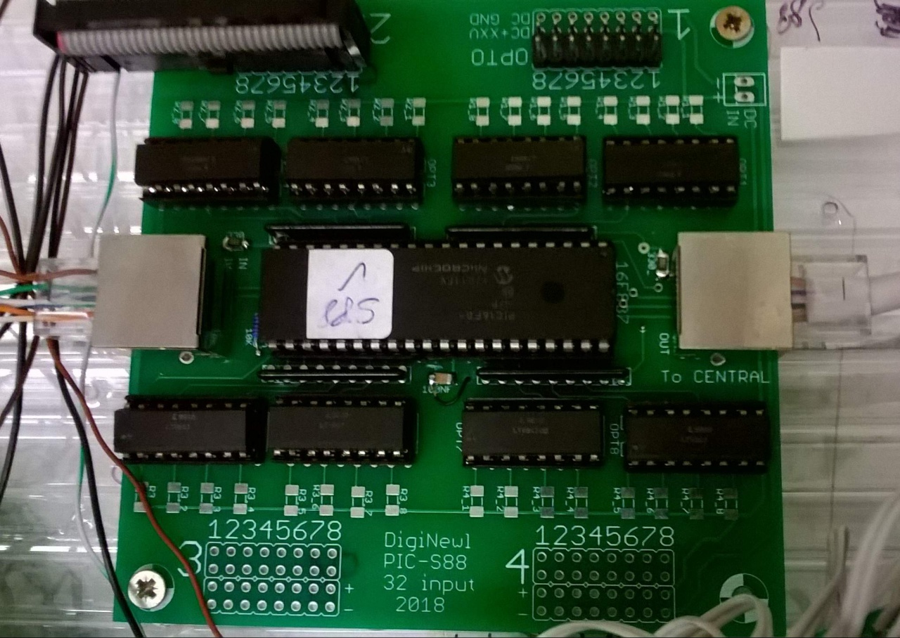 Elkészült a 32 csatornás S88 jelzésgyűjtőm - felfűzve is szépen működik.