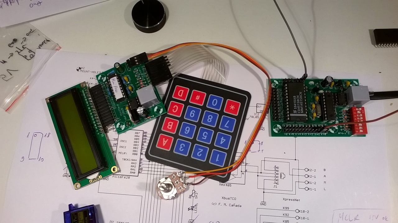 Állandóan világít a piros led, ami elméletileg azt jelentené, hogy nincs dcc-jel. Nincs kommunikáció, a másik led nem villog, ha az x-buson van forgalom. A panel nagyon viszi az áramot, melegszik a multiplexer chip, és a feszültségstabilizátor is.