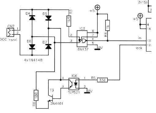 Most érdekeset mondtál, se 100 Ohm se tranzisztor nincs ebben a kapcsolásban, viszont ha már ACK (ami remélem jól sejtem hogy Acknowledge) akkor azt hogy tudna ez a panel generálni, ha nincs kapcsolatban a DCC-vel csak egy irányba egy opto-n leválasztva.  (de lehet hogy csak én nem értek még eléggé ehhez a világhoz) |