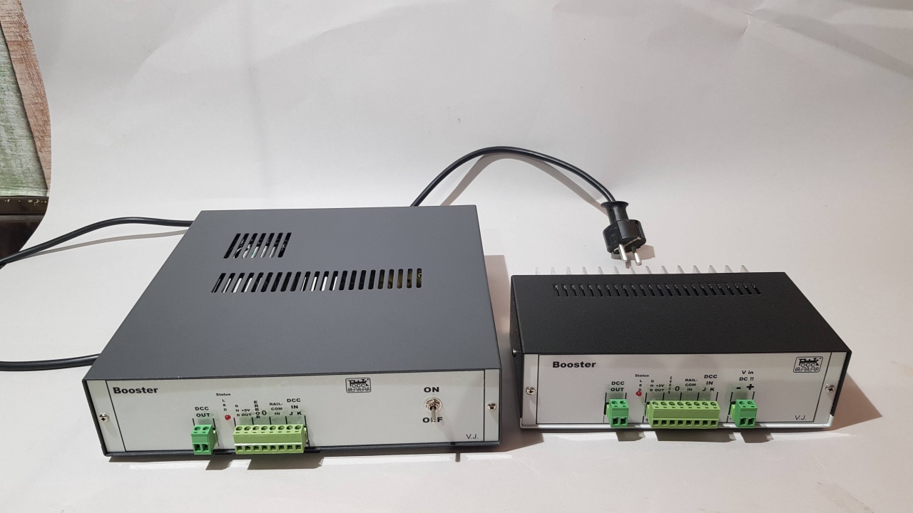 -Nagyáramú boosterek, főleg kertivasúthoz, max 13A-t tudnak kiadni (igény esetén többet is, de az már alkatrészek változtatásával jár) A nagyobb dobozban benne van az (amerikai gyártású) kapcsolóüzemű tápegység, a kisebb dobozhoz külön kell csatlakoztatni a stabilizált egyenfeszültséget. (A nagyobb doboz "temészetesen" költségesebb.)