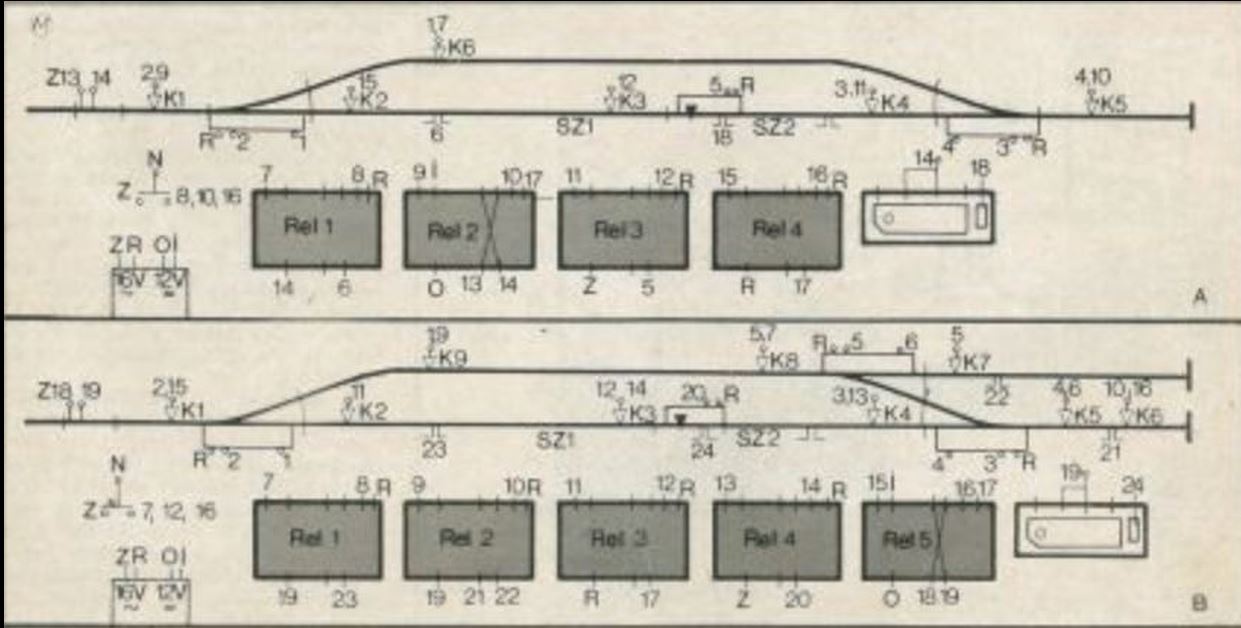 Egyik megoldás szerint csak egy mozdony körbejár 4db Zeuke relé segítségével, míg a másik eshetőségben mindjárt mozdonyt is cserél 5db zeuke segítségével. Annyi a modernizáció az estünkben, hogy a reléket felváltja Csíkos Mester CSM116 kapcsoló reléi, ami az állomásépület alá rejtve szépen befér. Modernizációnak tudható be talán az is, hogy a kocsikapcsoló nem elektromosan, hanem Kadee mágneskapcsolóval fog műkdni (nem rontja tájképet a nagy mágnes). A váltófelvágásos csúcssín állítástól meg vasutas neveltetésem okán írtózom. Állítódjanak azok a vasak csak rendesen ahogy kell!  Természetesen csak az egyik üzemmódot építem meg, a másik állomást teljesen én kezelem