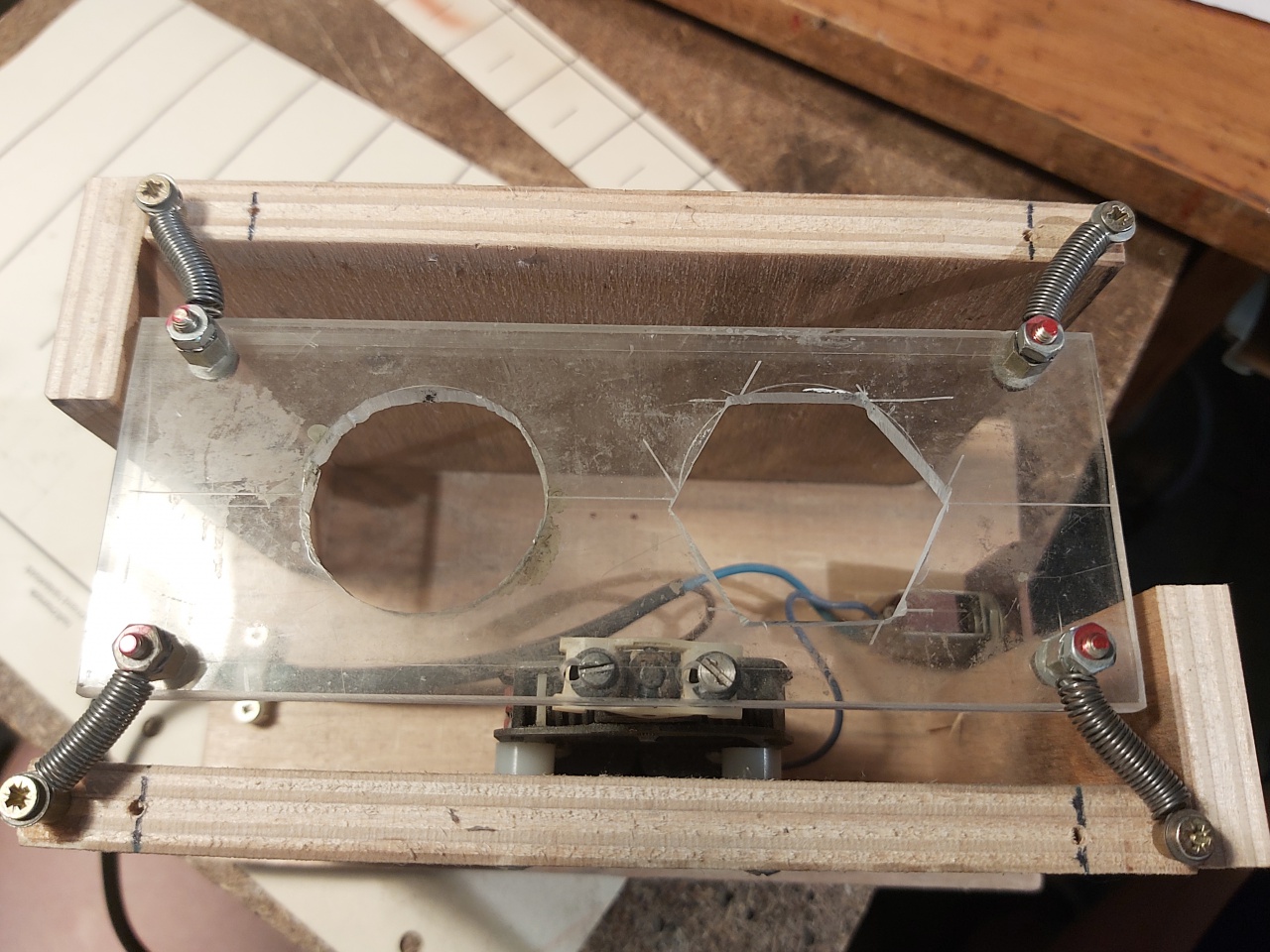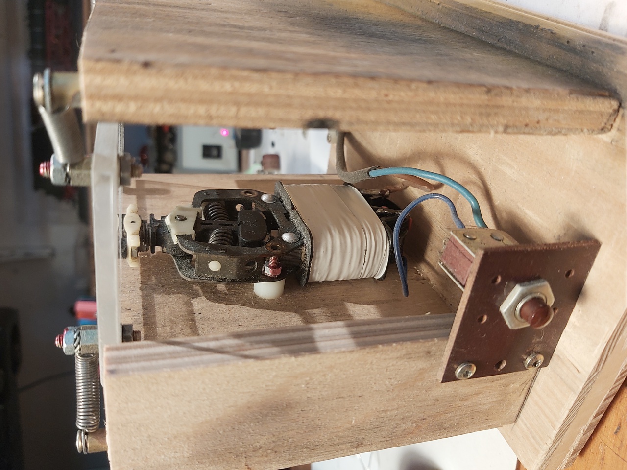 a borotva egy régi Bebo-sher márkájú volt, a tekercs ilyen rövid idejű müködtetése nem okoz melegedést. Fontos a csvaranyák lecsavarodás elleni védelme, festékkel való rögzítése.