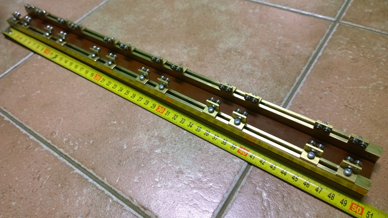 Végy egy köszörült 20mm-s tengelyt vagy ezüstacél rudat és órázd ki! Ezzel a szánt (kézi szánt is)is le tudod ellenőrizni,hogy párhuzamos legyen!!! |