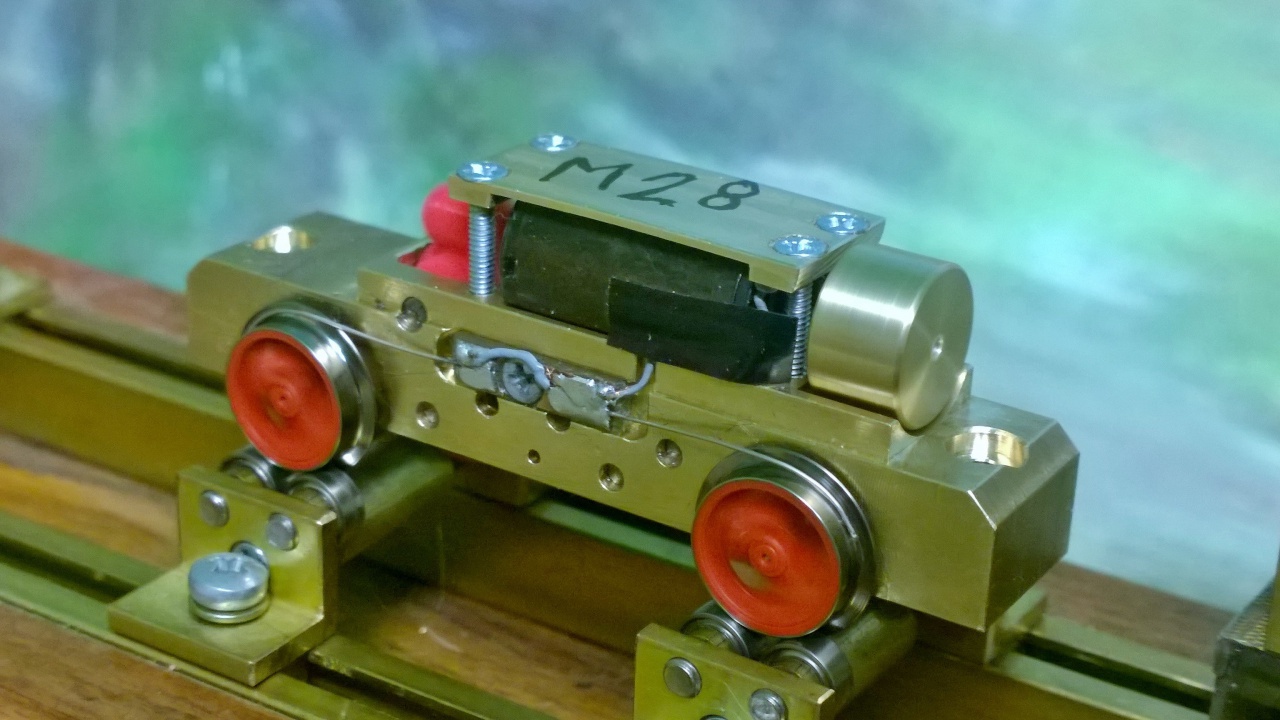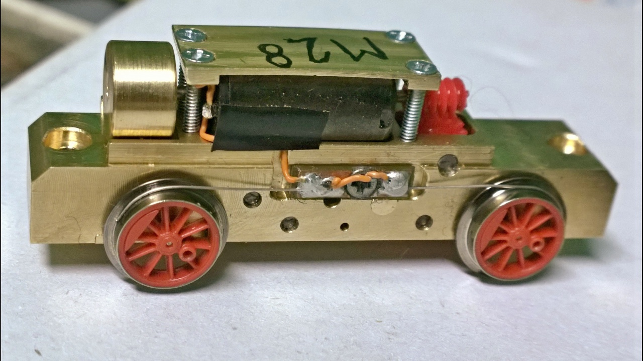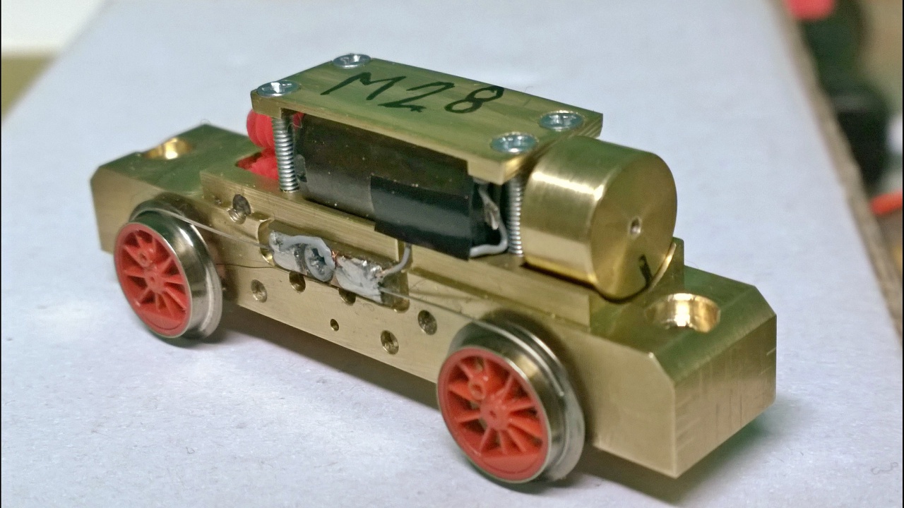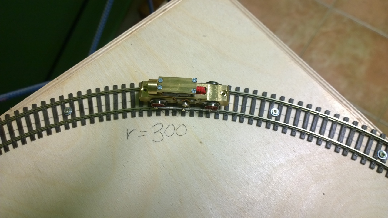Most nehogymá neked keljen elmesélnem,hogy mi gond........  Nem véletlenül kérdeztem meg tőle.. Itt volt nálam a mozdony(megmutatta már akkor amikor még ide és a máshova még nem töltötte fel)!! A réz tömb nagyon 'szélesnek" (13 vagy 14 mm volt)találtam alig tudott mozogni a kerékoldal irányba! Na most mivel én is készítettem Mazsolát már(vagy 1-2 éve) így tudom a "fogásokat"már! Ha a kerekeknek nincs "mozgásuk" oldal irányba akkor hiába megy szépen meg fog szorulni a kis ívekben főleg,ha még húzni is fog 1-2 kocsit! Mind ezt azért kérdeztem,mert a legtöbb modellezőnek nem 10 négyzetméteres asztala van ahol a legkisebb ív r500-s!! Nagyon sok asztalon pont a helyhiány végett vannak kis ívek és nagyobb ezrelékes emelkedők!! |