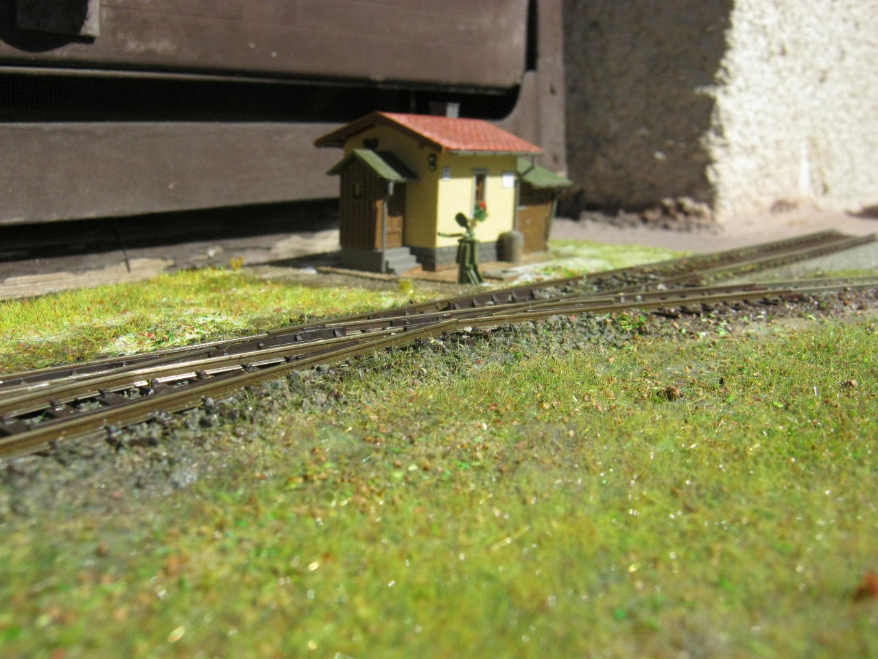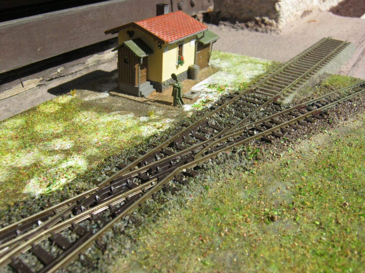 Ez egy padlóvasúthoz készült H0/H0e keresztezés. Több szépséghibája van:
