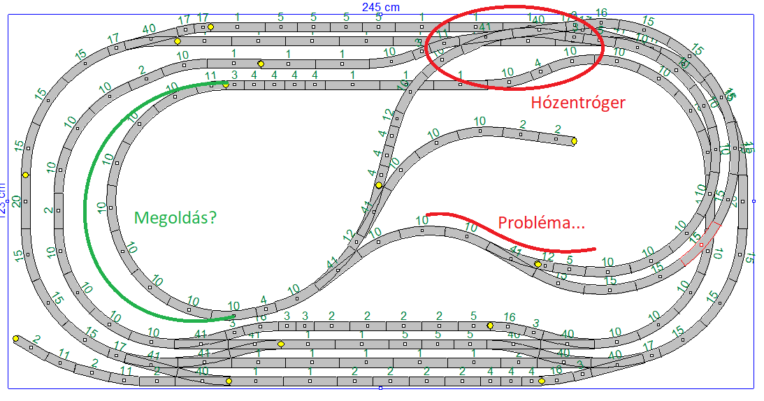 Köszönöm az értékes hozzászólást! Nincs gyakorlatom a pályaépítésben és fontolóra veszem a dolgot! A hózentróger nem hiszem,hogy befér mert az nem kalapos sines és az átalakítóval brutálisan hosszú lenne az ívek nem jönnének ki..Először pedíg úgy terveztem kb,hogy rajzoltad az ívet de túlságosan kiment bal oldalt a kivitelezési rajz arányaihoz képest ezért húztam össze. Megépítem és futáspróbákat hajtok végre. Ez csak egy terv a sok közül így szokott lenni mikor nyomtatott áramkört tervezek akkor is  |