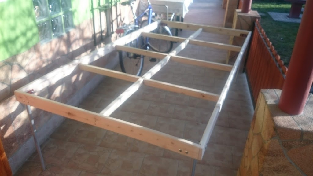 Elkészült az asztal össze lett ragasztva. Egy alap lazúrt kapott de a végleges majd ha már az építésben előrébb leszek akkor lesz megcsinálva ne karcoljam össze..A lábak két kiselejtezett fűkasza szárából készültek  |