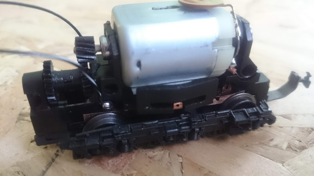 Másik barkácsolás a BR130 motorom teljesen megadta magát,maga az állórész rossz szerintem a mágnes megmozdul bent,kínlódtam is vele egy napot,de megoldottam egy központi zár motort tettem bele mi nagyon jó lett .. Úgy megy,hogy a 880 íven felborul ha nem vigyázok.. Lesz miből visszavenni ha digi lesz.. Alacsony sebességen is jó a nyomatéka a motornak ezért lett szerintem sokkal jobb az eredetinél..A PIKO hátsó kefés motoroknál azt vettem észre egyik irányban nem úgy megy hanem lassabb ez van a BR185 motorkocsinál is pedig az ki lett tisztíva kefe,kommutátor minden,de mégis pedig nagyon finom a hangja..Motorból van tartalék ezért is ez lett.. Kéne még egy hajtást szereznem akkor mindkét fele lehetne ilyen akár.. |