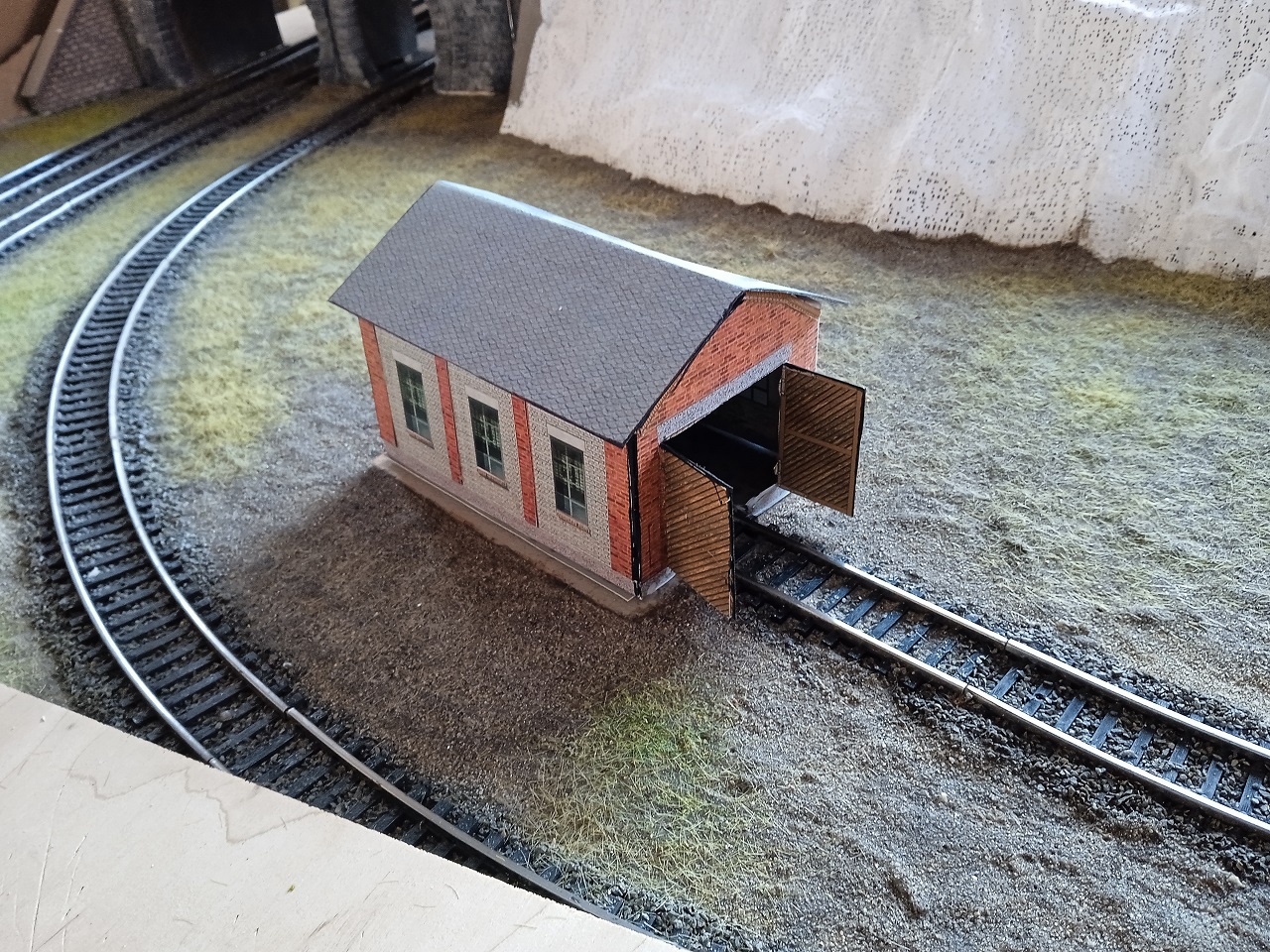 Az alsó állomáson, a BN150-nek szánt motorszín csak ideiglenesen van ott. Kap oda az állomás egy rendes épület modellt, már kinéztünk egyet, csak be kell szerezni. |
