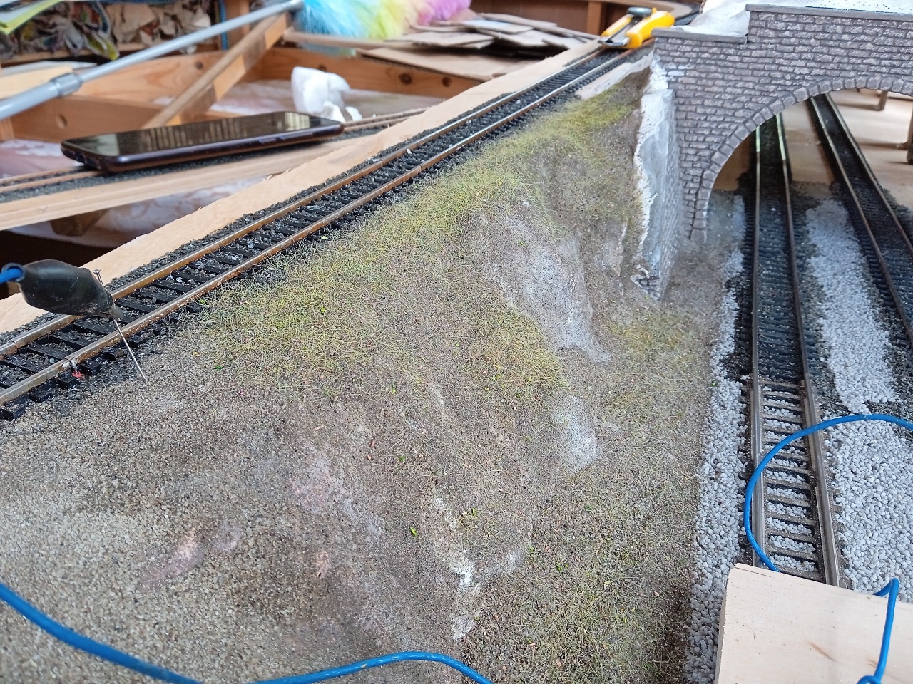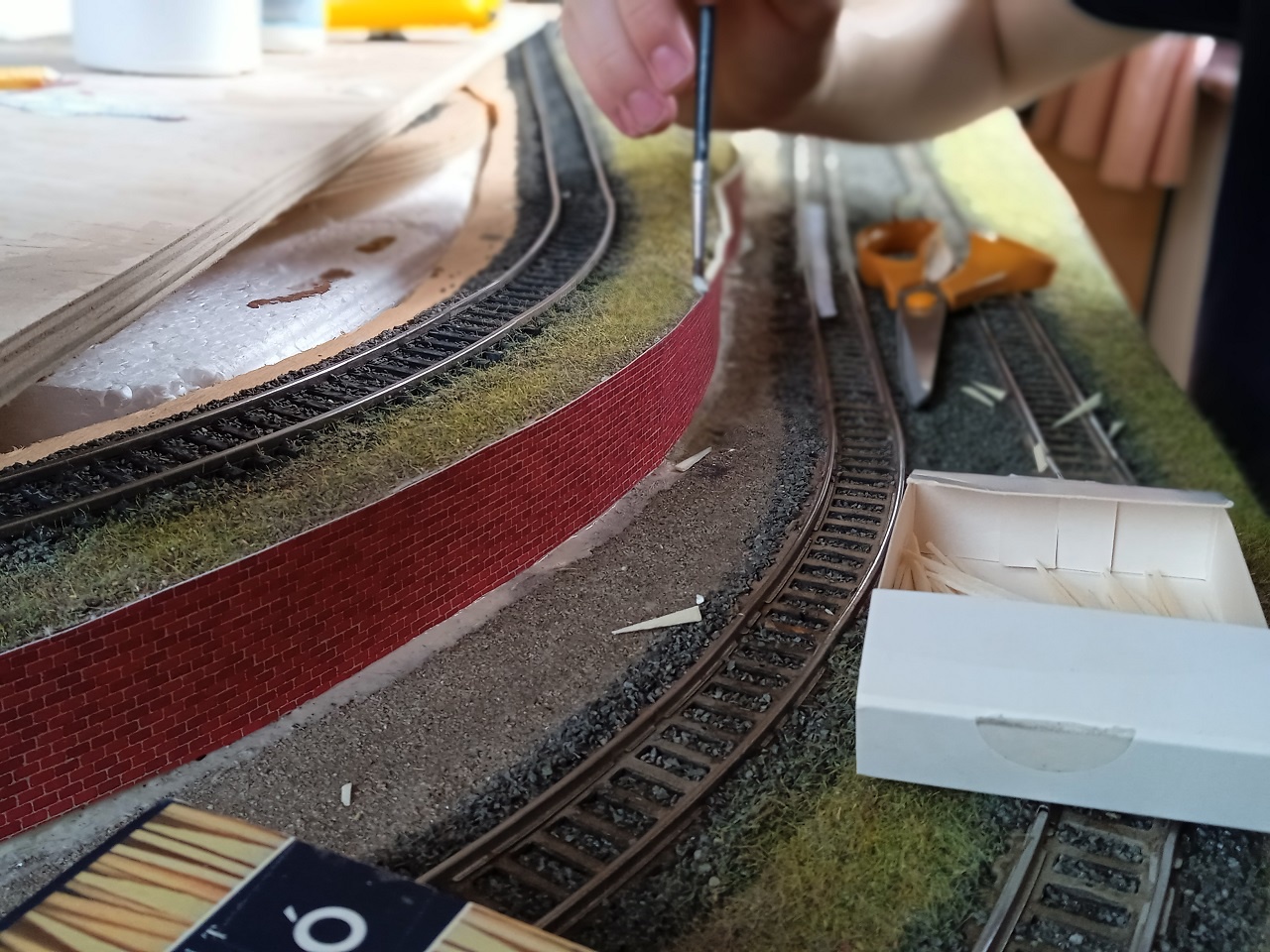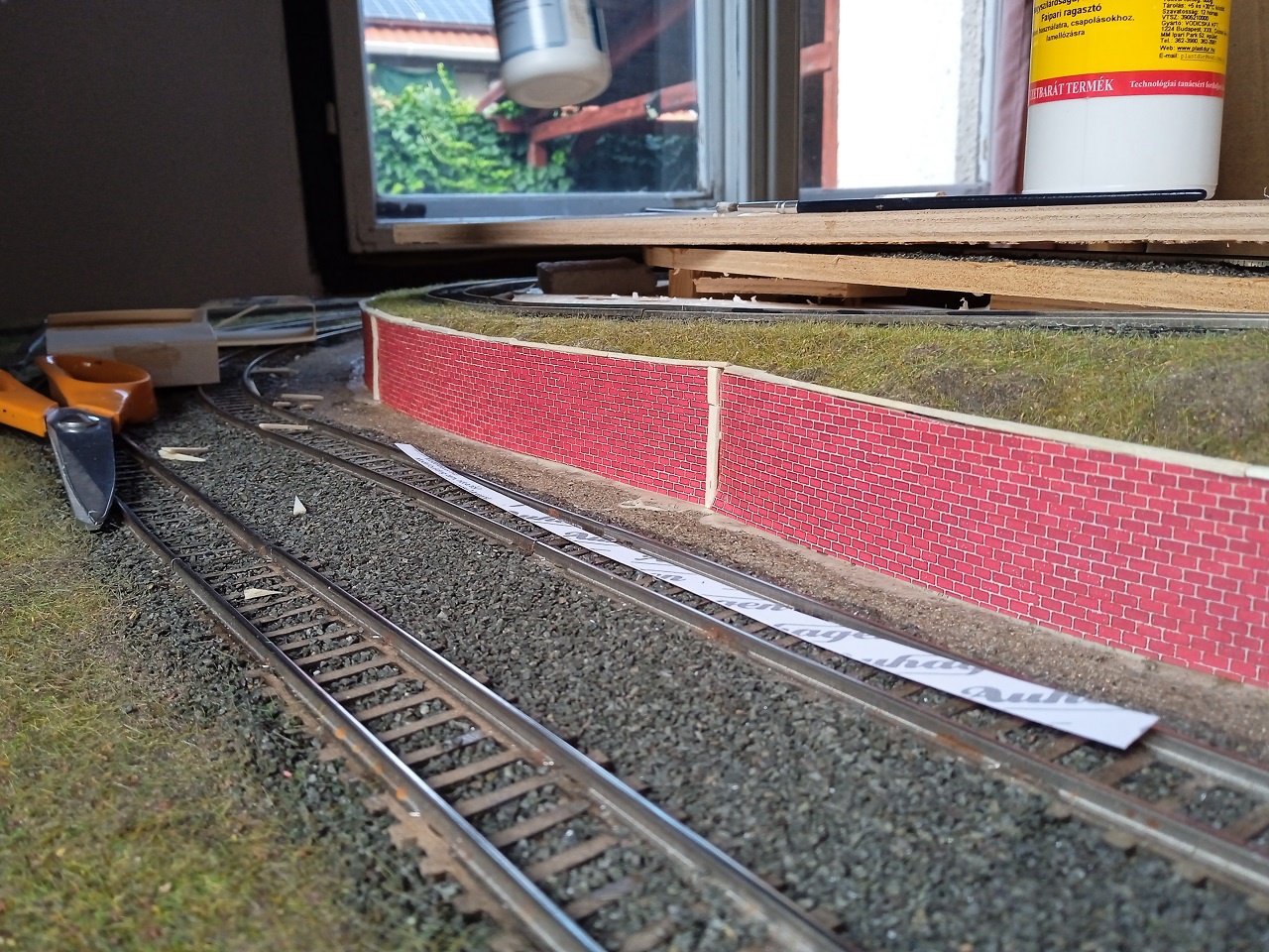 Közben épülget egy támfal is, természetesen régi dekorkartonból, a'la Auhagen. |