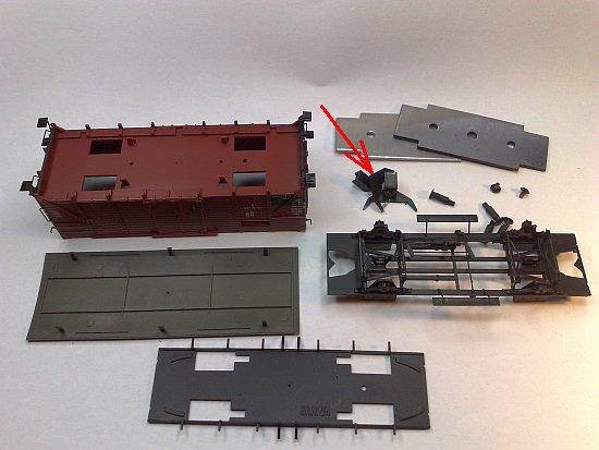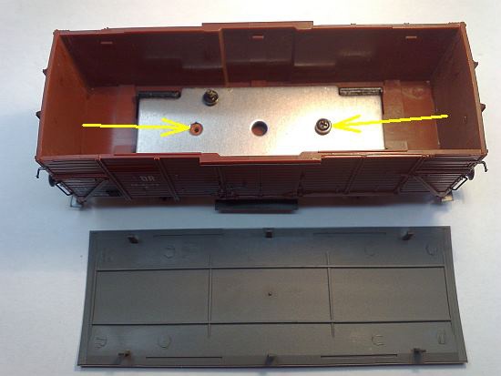 - Brawa kocsi szétszedése: - Először a tetőt kell óvatosan lepattintani, majd a csavarral az alváztól a kocsiszekrényt elválasztani.