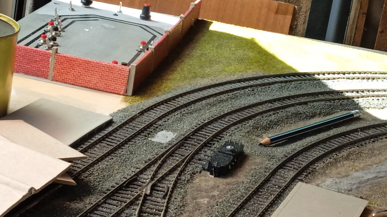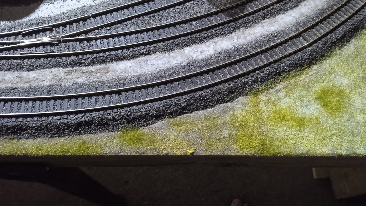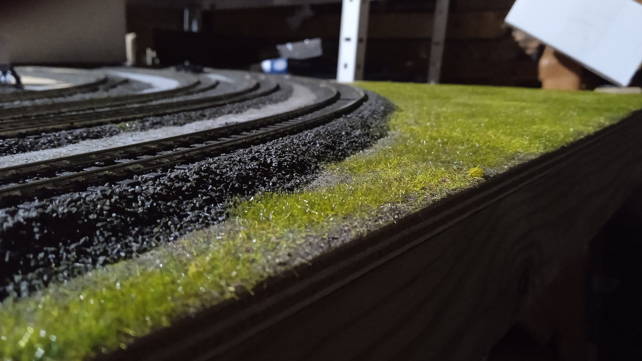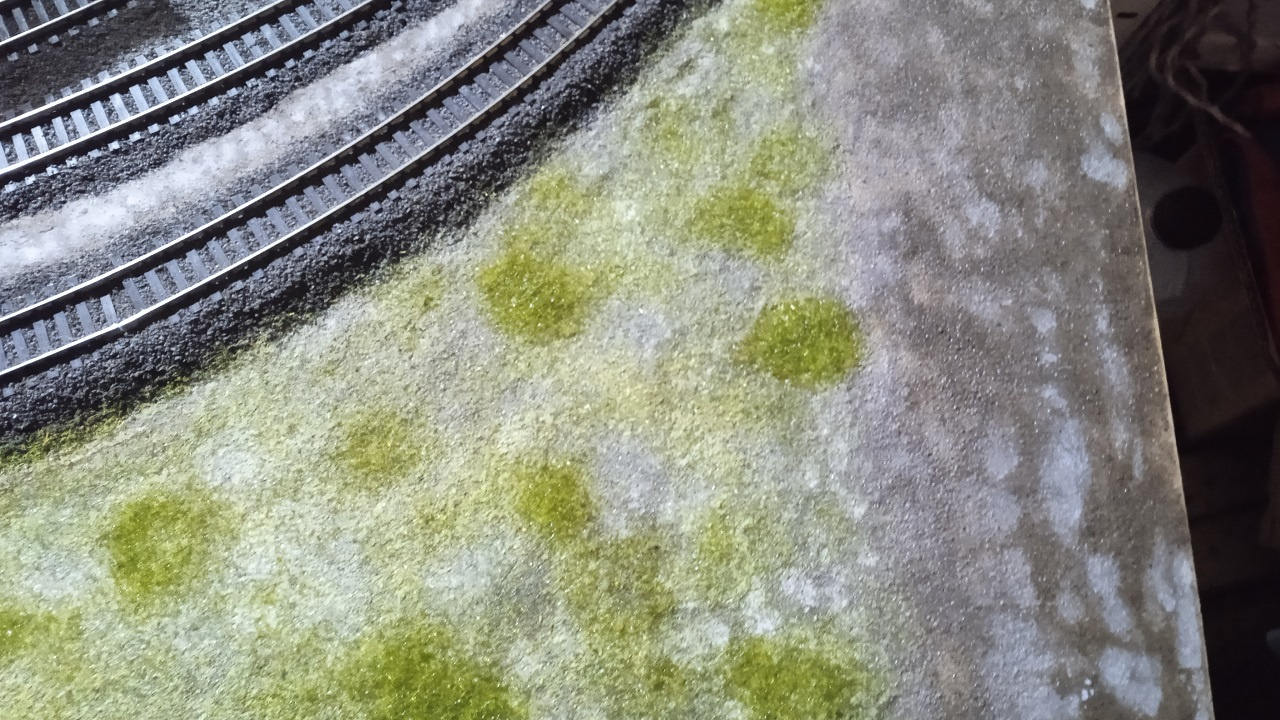 Egyébként életem során dolgoztam már sok kavicságyazat anyaggal. Annak ellenére, hogy engedni a színét vizes ragasztásnál, még az Auhagen a legjobb, a többi csapnivaló.