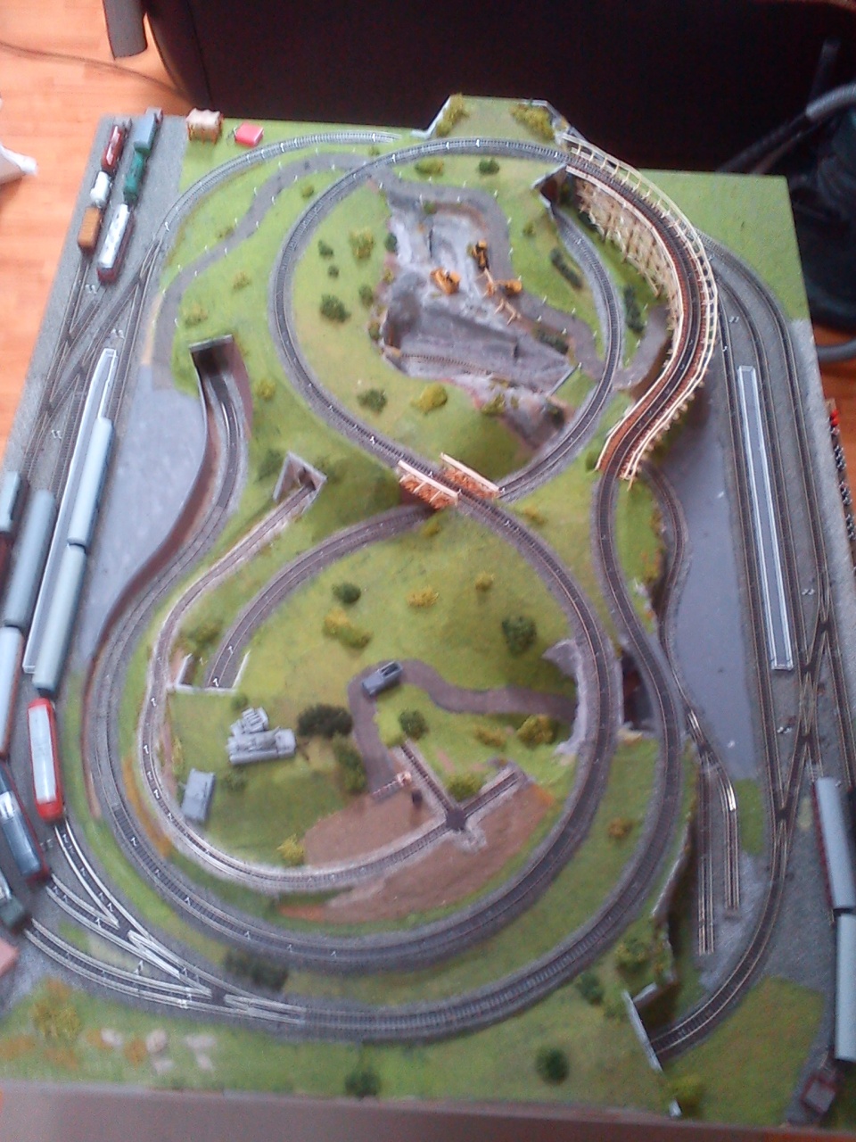 Hát ez jó kérdés, van egy többé-kevésbé kész terepasztalom amit az unokaöcsémnek csináltam, hogy még se a parkettán tologassa a mozdonyokat és építés közben jöttem rá, hogy magamnak meg csinálok rá keskeny nyomközt (hogy én is tudjak játszani) .
