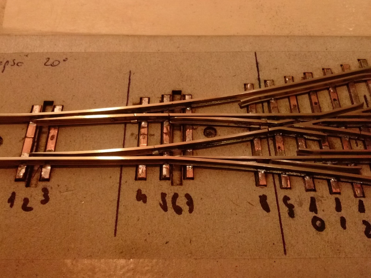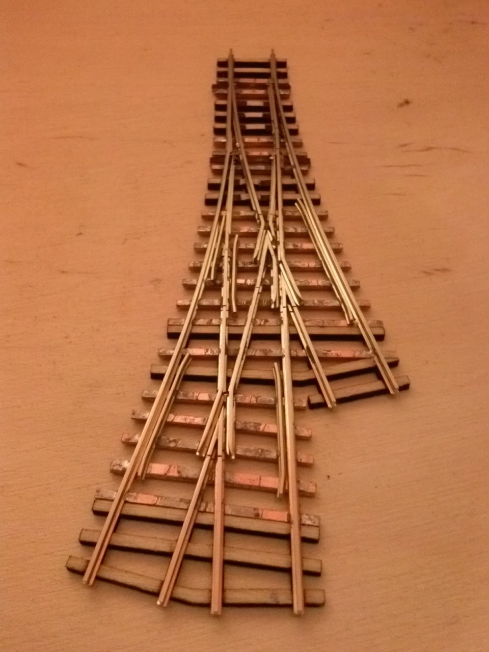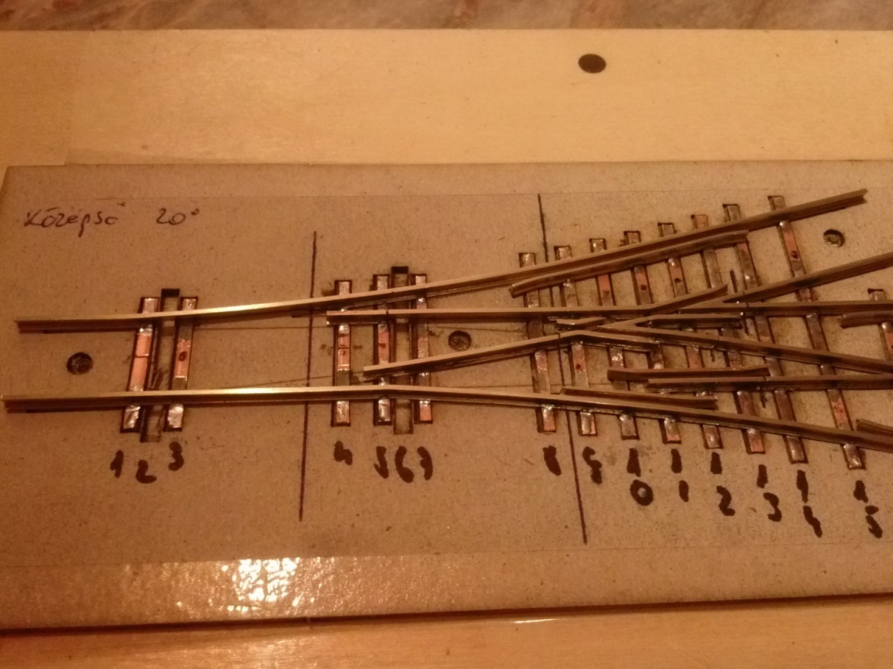 Itt van egy régebbi, ez még Peco sínre készült ha jól emlékszem, 450/850mm 10 fokos keresztezés: |