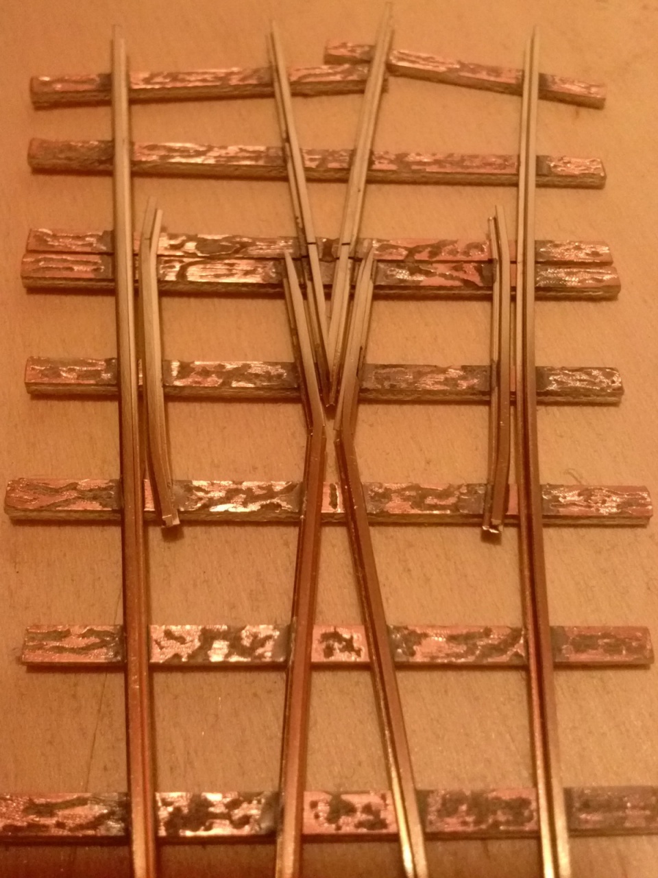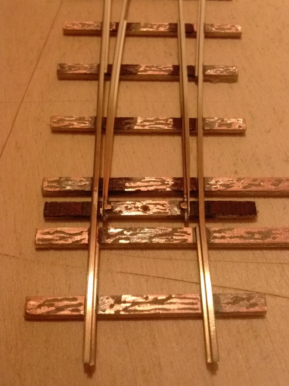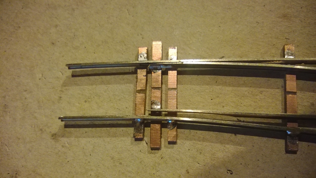 Néhány észrevétel: a szigetelő vágások lehetnének egy kicsivel keskenyebbek. Én 0-ás fémvágó szállal szoktam átvágni. A cint egy tűreszelő hegyévek kicsit kapargasd le a sín oldaláról, ahol felfutott! A csúcssín utolsó rögzített pontját belül is forraszd le, hogy erősebb legyen.