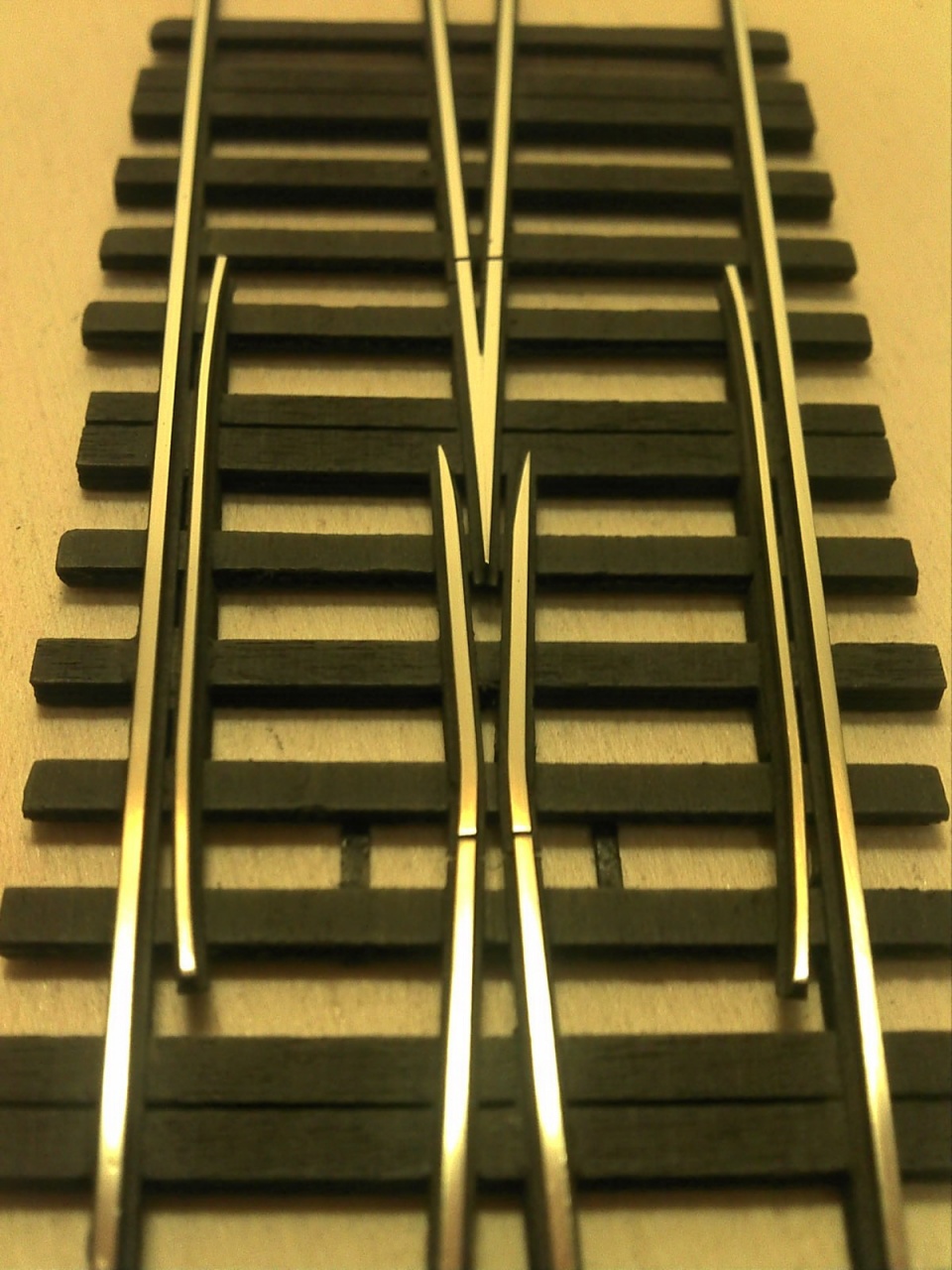 Egyébként a valóságban a vezetősín magasabb a terelősínnél - vagy egyforma a magasságuk, ha pályasínből készítették. Ez utóbbi már nagyon kiment a divatból, esetleg villamosnál vagy régi felhagyott vágányokban találkozhatsz ilyennel. |