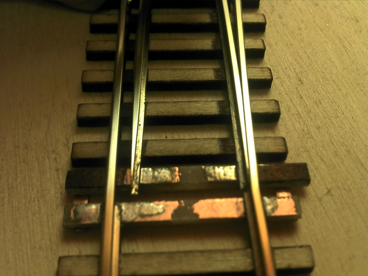 Nemrég nézegettem a kitérőket itt Zugló határában, van beton és fa talpfás is, onnan jött az ötlet, és elég jól bevált. Gondoltam arra is, hogy megemelem 0,3mm-rel (ilyen vastag réz lemezem van itthon), de akkor horror lenne tisztítani a vágányzatot. |