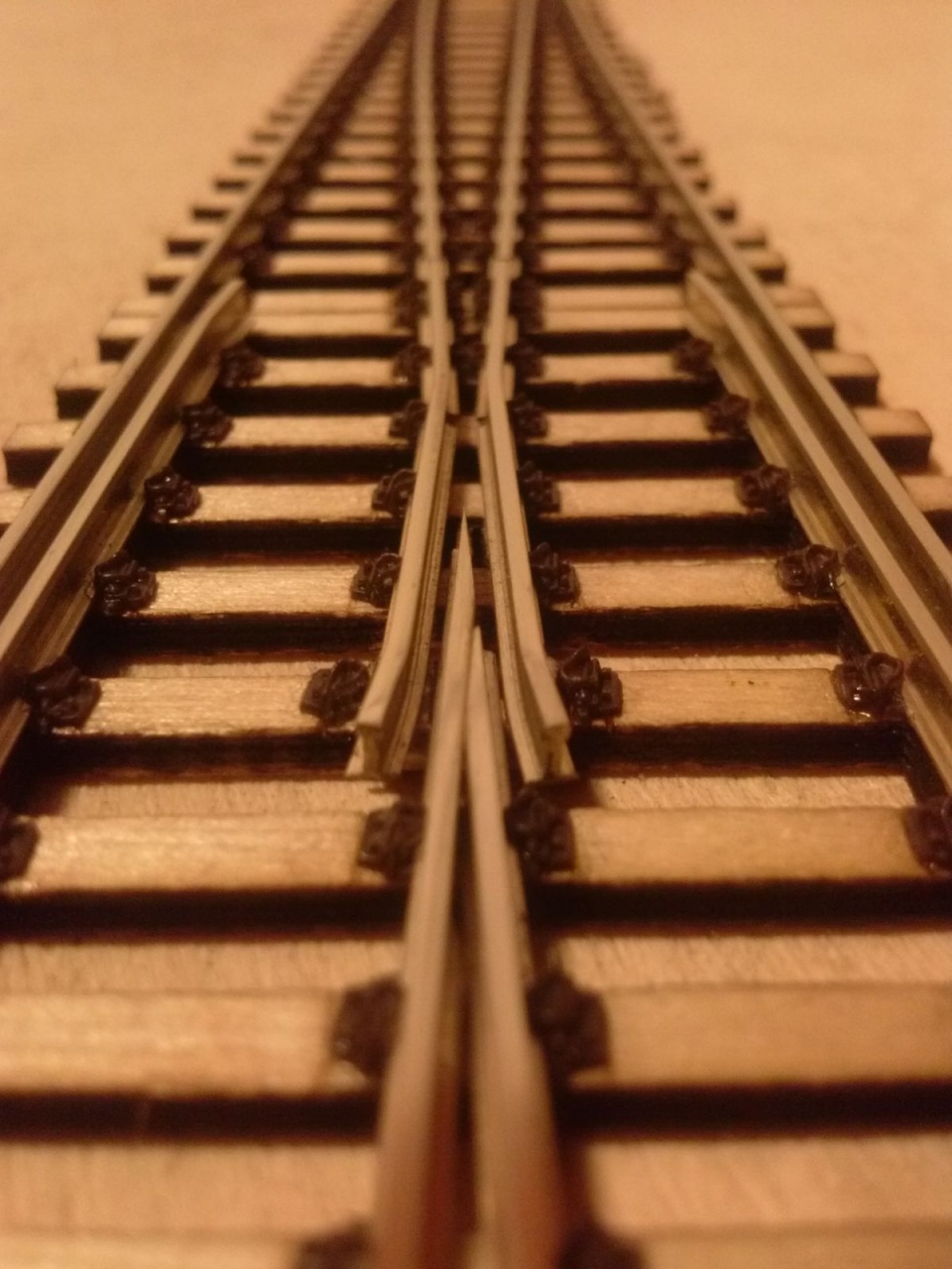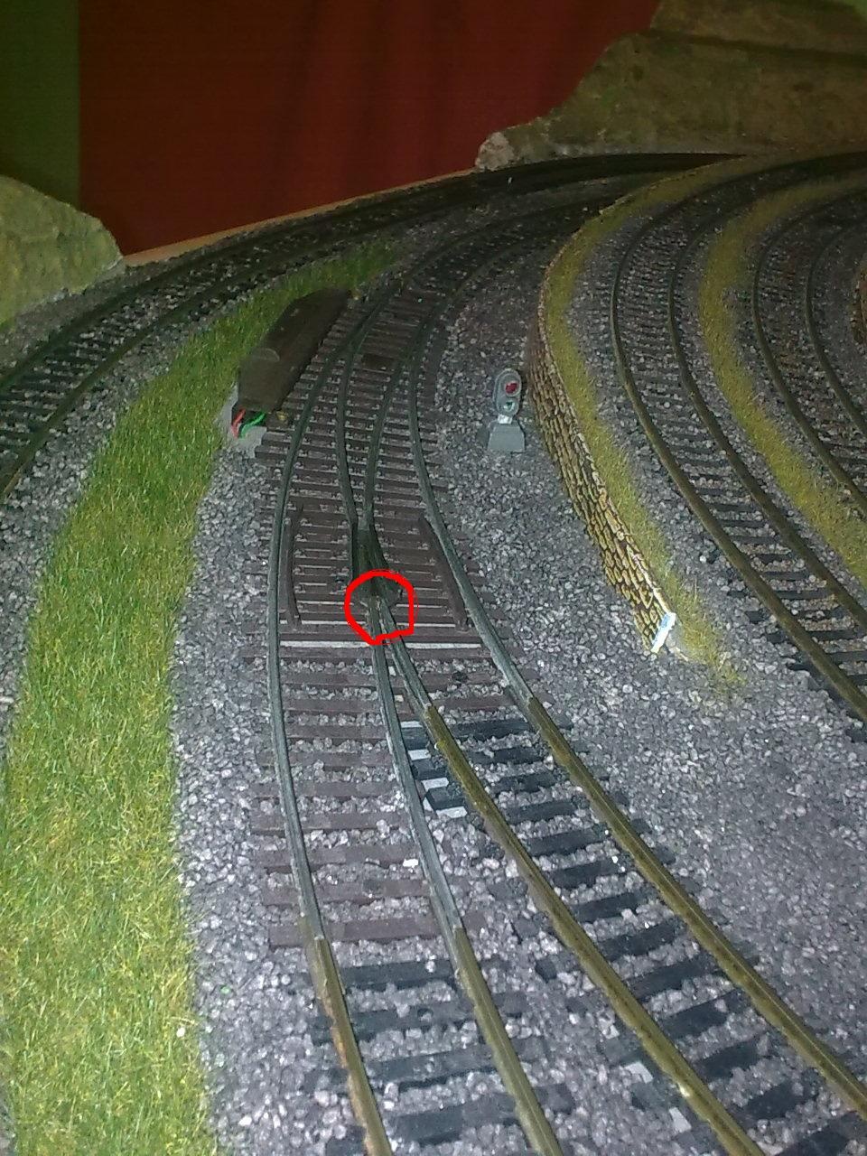 Az általam bekarikázott részt nagyítottam meg reszelővel,(két sín végeket) cirka 0,2 mm oldalanként, most már az összes mozdony átjön a kitérőn szikrázás nélkül még igen lassú menettel is.