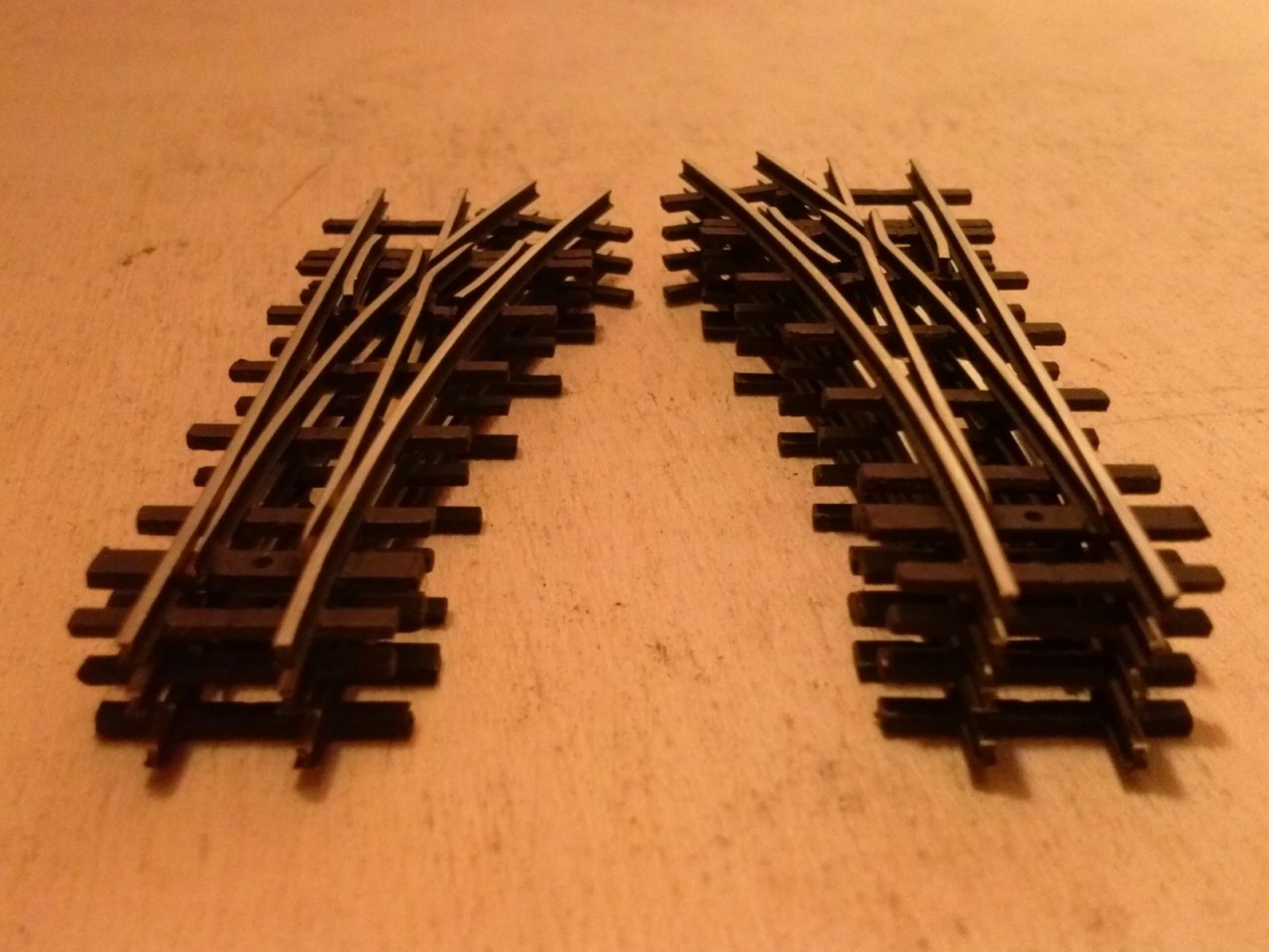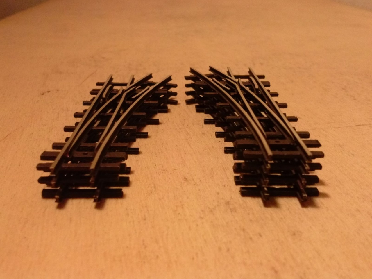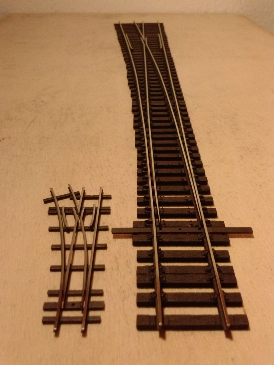 ... és csináltam 7 darab TTe kitérőt is. Aki esetleg úgy látja, hogy ezek ugyanazok, mint a H0f kitérők a múltkor, az nem a véletlen műve. Mivel ezek szervóval lesznek állítva, ezért rugalmas csúcssínekkel készültek. |