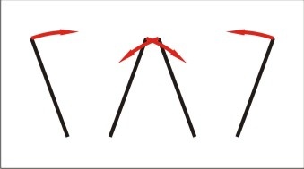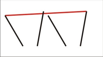 Az ábrán láthatod (erősen torzítva), hogy mozognak a csúcssínek. A két szélső csúcsa befele mozduláskor emelkedik, a két belső viszont mindíg lefele mozdul el, ergó, ha mind a négyet fixen rögzíted, befeszül az egész. Ezért kell a két belsőt olyan módon rögzíteni, hogy az állítótalpfához képest föl-le is tudjanak mozogni. |