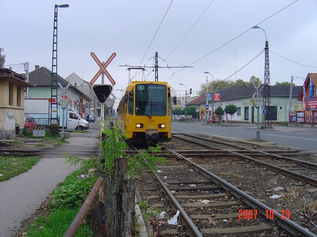 Az Üllői úton a 142-es nagyvasút, meg az 50-es villamos kereszteződésében nem a nyomkarimán megy a villamos. Rendes, lényegében nagyvasúti kereszt van, mert ott a villamos is Vignoles féle sínen halad, nem pedig Phoenix sínen. Holnap dobhatok róla képet. |