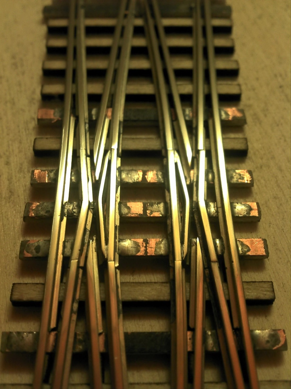 Bekarikáztam a kedvedért!  A csúcssín vége a fix síndarabtól legalább 0,3mm-re belógott, nagyon csúnya volt! Valószínűleg akkor nyomhattam meg oldalra, amikor fényesítettem a sínszál tetejét. |