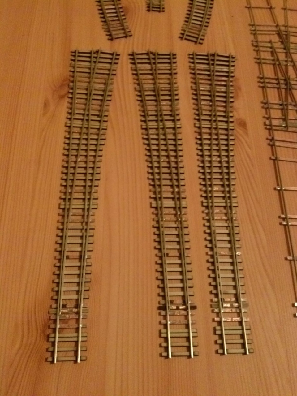 Ez három darab 9°-ra átgondolt XI-es kitérő FREMO modulokra, két PIKO A rendszerhez tervezett kitérő amelyek azonban nem részei a geometriának, egy TT 15°-os hármas váltó, és egy készülő két angolváltós hózentróger szintén egy FREMO modulra. |