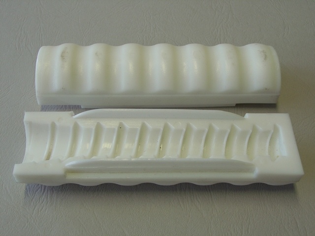 Nyertél! A többieknek: ez egy LX típusú vasbeton aljhoz való "2 részes hullámos műanyag betét". Ez a betonalj ugyanis (sok más elődjéhez hasonlóan) még gyárilag fabetétes volt. Aztán amikor elkorhadt a fatipli, akkor elkezdett zörögni a csavar, elmászott a nyomtáv meg ilyenek. Az ilyen aljak javításának egyik (és ma már szinte kizárólagos) módja a betétcsere: csavar kihajt, lemez eltol, fakorhadék/mohos virágföld hangyabollyal (tapasztalat!) kivés, műanyag betesz, lemez vissza, csavar behajt. Ugye, milyen egyszerű?  |