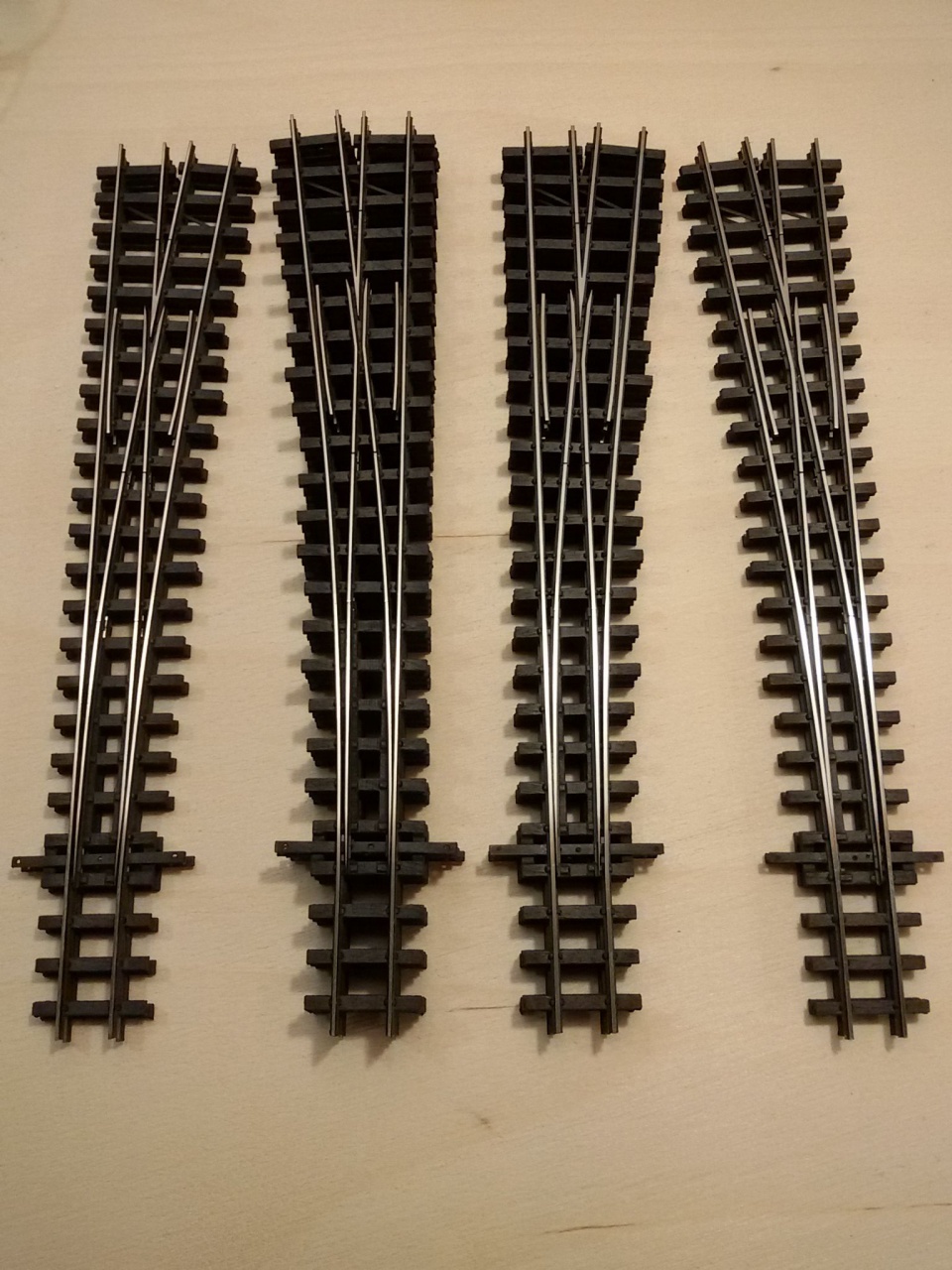 PIKO R1-R2, 360-422mm lesz az asztalon, ezeket a váltókat az R2 ívvel terveztem. De régebben csináltam váltót R1 ívvel is. |