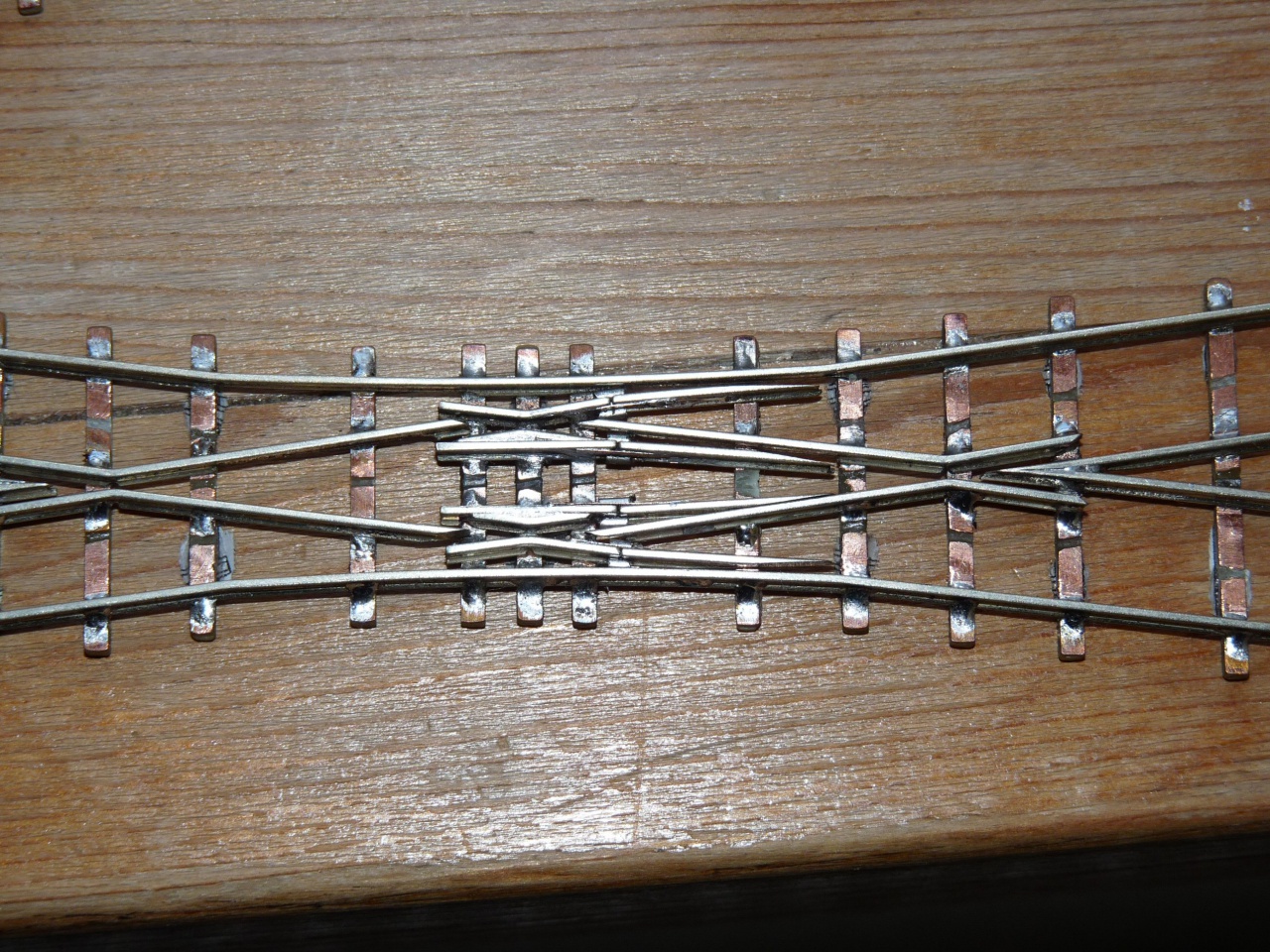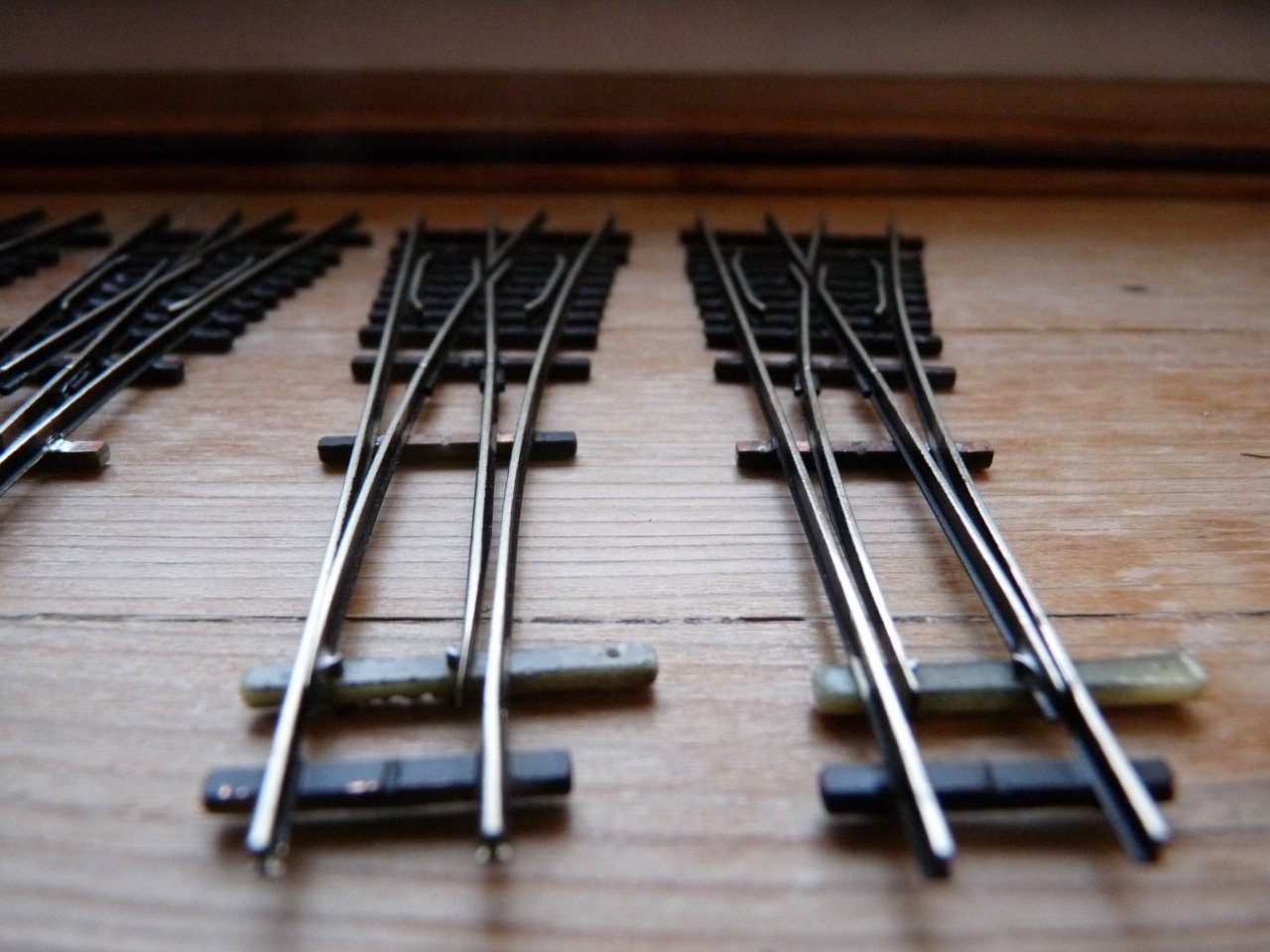 Csatlakozva az előttem szólóhoz, a csúcssíneket kicsit hegyesebbre kell készíteni, de azért ezen is el fognak menni a kerekek, ha csak nem valami nagyon kis ívet raksz közvetlenül elé. A síntalp kikönnyítését pedig ebben az állapotban is meg lehet csinálni egy tűreszelővel, és kb. a következő három talpfányit kell kireszelni mindkét oldalról. |