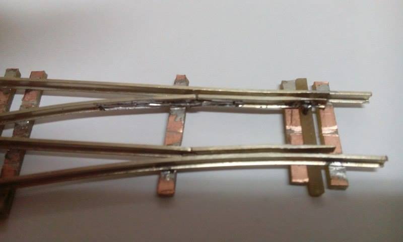 Én nagyon kezdő (de lelkes  ) vagyok váltó ügyben de ami feltűnt: Elég jól hozzázáródnak a csúcsok a tősínhez? (eléggé ki van hegyezve a sín vége?) A mozgatást megkönnyítendő ki van könnyítve a mozgó rész? A zárlat elkerülése végett az átvágásokat még meg kell ejteni.