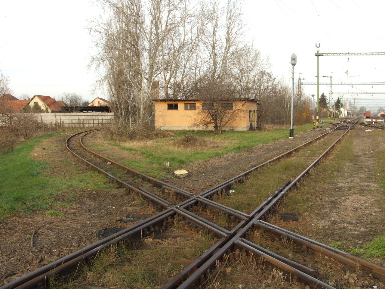 A megszakítás nálküli átszelésnél fontos, hogy a megszakított vágány sínkoronája magasabban legyen a folytonos vágány sínkoronájánál. A kiskőrösi képen látszik is a szintkülönbség, az elsőnek berakott képen viszont mindegyik sín koronája egymagasnak látszik.  |