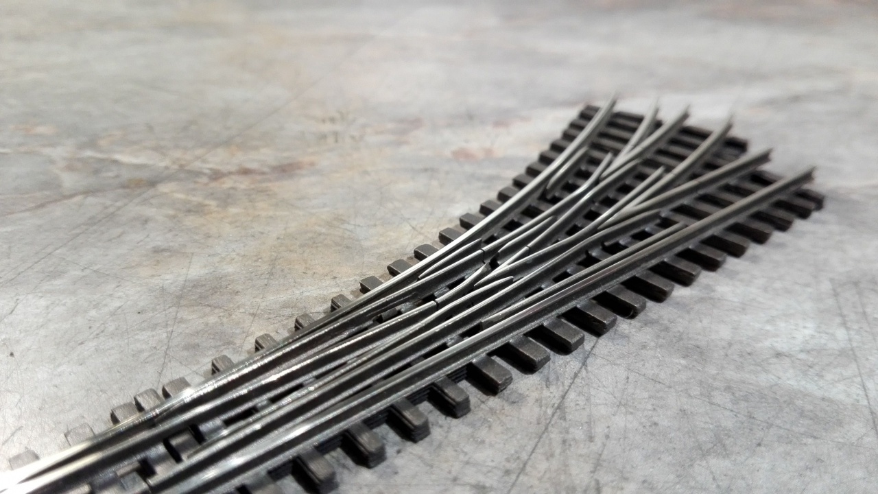 I. korszakos h.é.v. egyszerű kitérő 6,06 fokos, H0-ban code60-as sínprofilból.