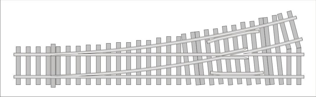 A 22,5 fokos darabot nem igazán lehet használni, mert az ilyen nagy szögű kitérők átmenőkörívesek, a szívdarabnál pl. a BTTB ~17°-os. Az max. 0e bányavasútra jó!  |