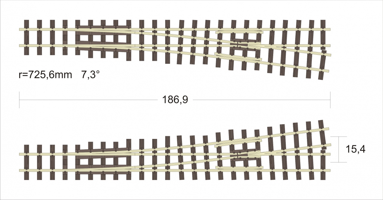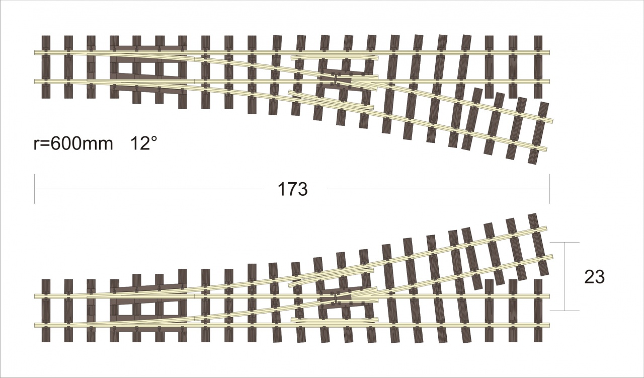 Ipartelepi duplasínes 14 fokos H0 kitérők. Értelemszerűen be lesznek burkolva. |