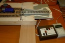 Régóta terveztem fordítókorong készítését, a nemrég felkerült cikk és a hozzászólások pedig megadták a szükséges kezdőlökést. Íme, az első deszkamodell, kísérlet egy szegmens fordítóra. 6mm-es, duplán csapágyazott tengelyen fordul, a híd egy 3.2mm-es alu lemez, merevítés nélkül. Alátámasztó görgők nincsenek a végén, így is elég stabil. Persze a látvány miatt alá lehet majd tenni sínt, de a működéshez nincs rá szükség, így elég az optikai szempontoknak megfelelnie.