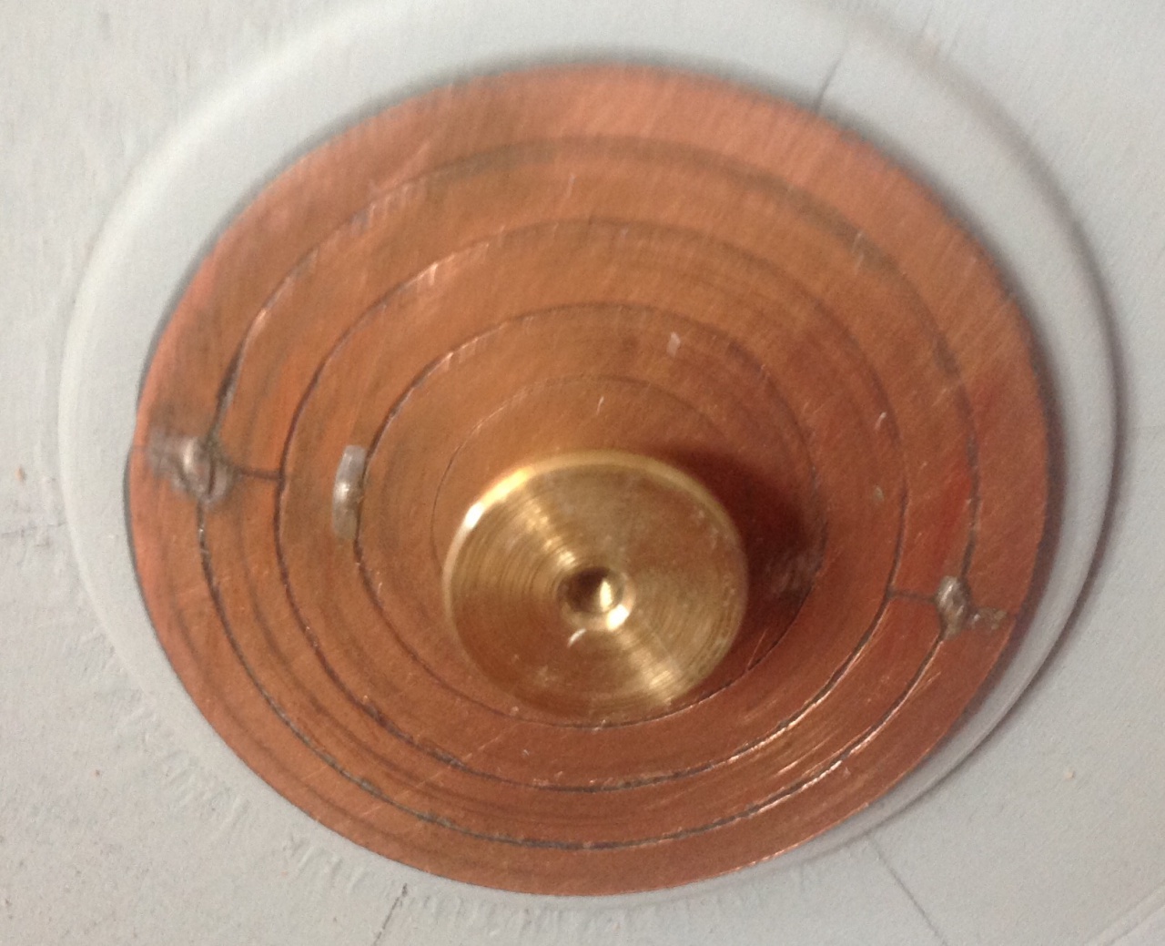 A hid alján látod a plexit . A királycsap itt egy lyuk a közepén van - most csak egy lyuk mert lecsavartam a csapot ( fekete/fehér négyzet) a plexire van felcsavarva a két dupla kontaktus. Neked csak egy-egy kell a hid hosszanti tengelyén a királycsaptol egyforma távolságban. Mindkét kontaktusnak ugyanazon a gyürün kell futnia (mint a képen balrol a 2. meg a 4. )