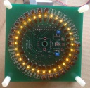 A korong mellett egy PACO-unisemaf fényjelző áramkörről kapcsolhatók az infraLED-ek. 8-as csoportban működhetnek, ha bármelyik LED-et felkapcsoljuk az ő váltócímével, akkor a többi másik kialszik. Így 8-as csoportokban szinte bármennyi kijárata lehet a korongnak kis túlzással.
