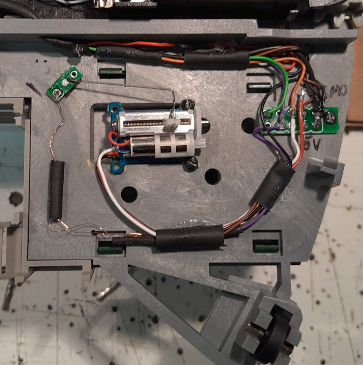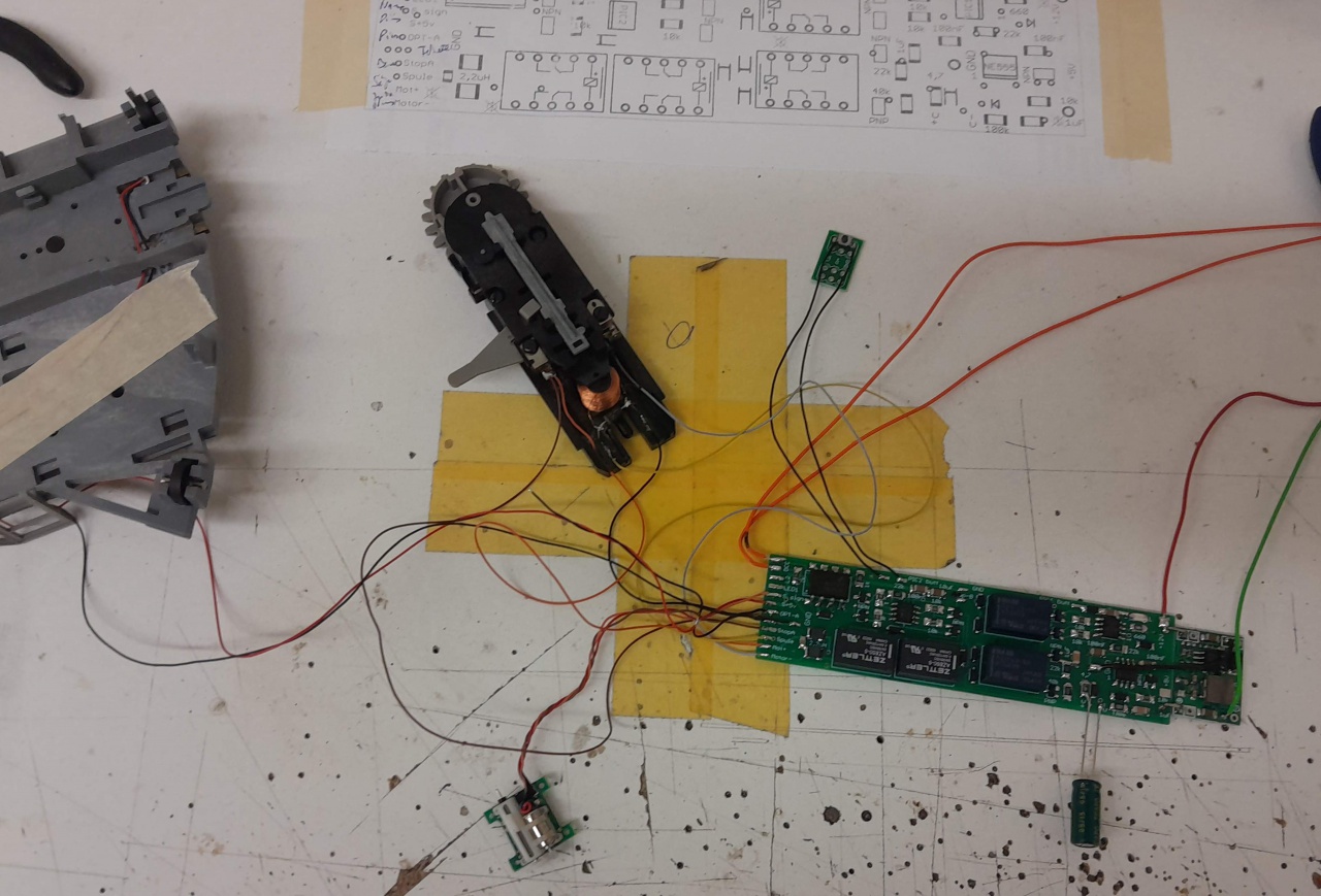 Annyit megpróbálok még összehozni, hogy valamennyire össze tudjam rakni, és kipróbálni, tényleg minden rendben működik-e. Aztán nyugodtan elrakhatom évekig. Még a forgó Sperrsignal-t valahogy mozgatnom kell a szervóval, na az sem lesz egyszerű, de ez ráér később.