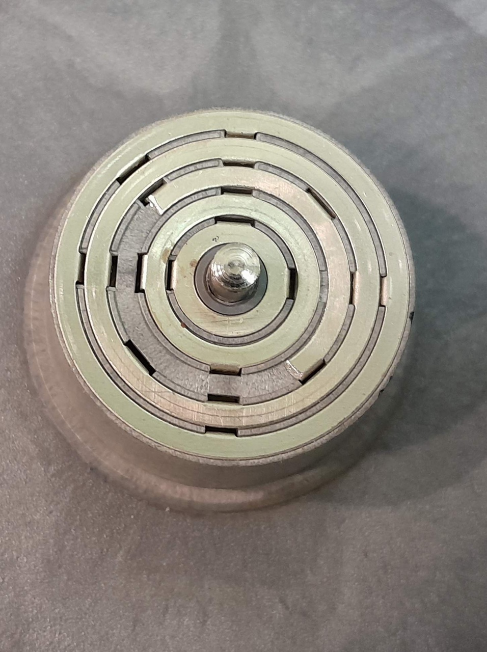A hídon van hurokfordítás is, így nem kell hurokmodult használni, nem alakul ki rövidzárlat sehol. Nem pont 180 fokos, de így egyszerűbb volt kivitelezni – egy körérintkező erre szolgál. A korong alján jelöltem hol vált a polaritás, beépítés után tudjam hogyan kell majd a kilépő síneket kábelezni.