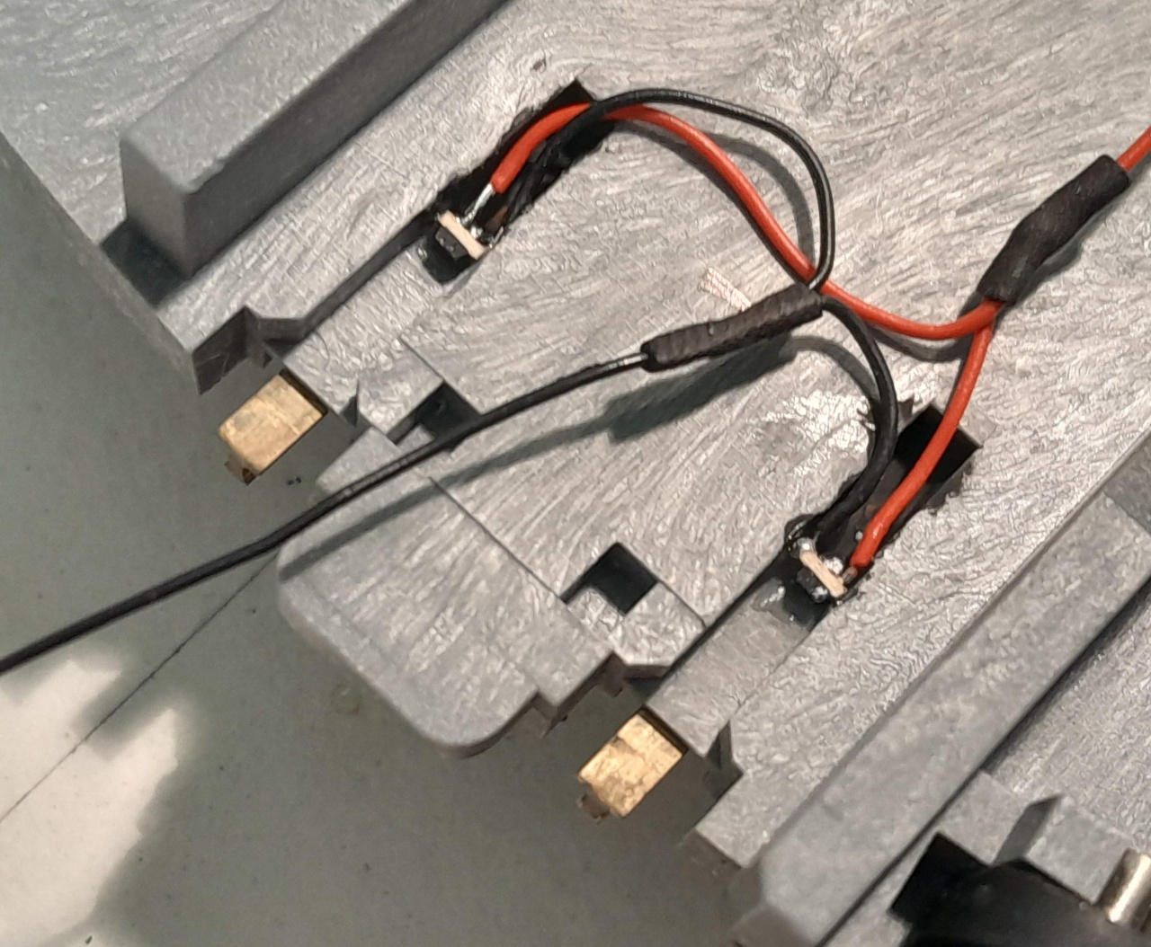 A híd sínszálai alatt egy-egy, azaz négy infrafototranyó van elhelyezve (képen még csak egy). A használt kijáratok sínszálai alatt középen van egy-egy infraled, ami egy eszközdekóderről ki/be kapcsolható (váltócímen is DCC-ről).