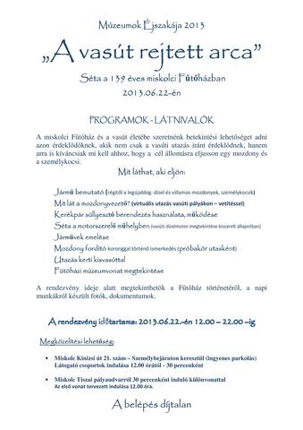 Kedv csináló videó a Múzeumok éjszakája rendezvény, a MÁV-Gépészetnél, Miskolcon, 2013. június 22-én. Bővebben: Link |