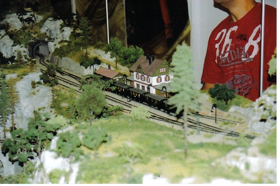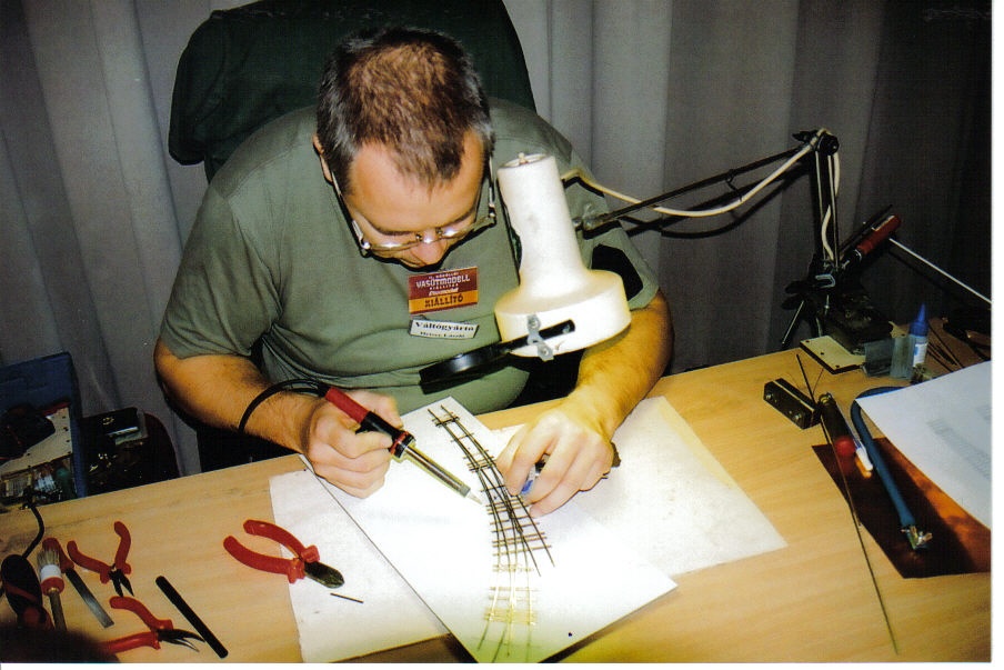 A második helyett az első képen az ő kedvenc asztalának a részlete látható, paksinuti Ferencvárad. A készítőt nem kell bemutatni, tudása, kézügyessége, ízlése, modellezési stílusa világszínvonalon áll. Sajnos a kép kicsit bemozdult, nagyon-nagyon sokan voltak kíváncsiak a H0e berendezésre.