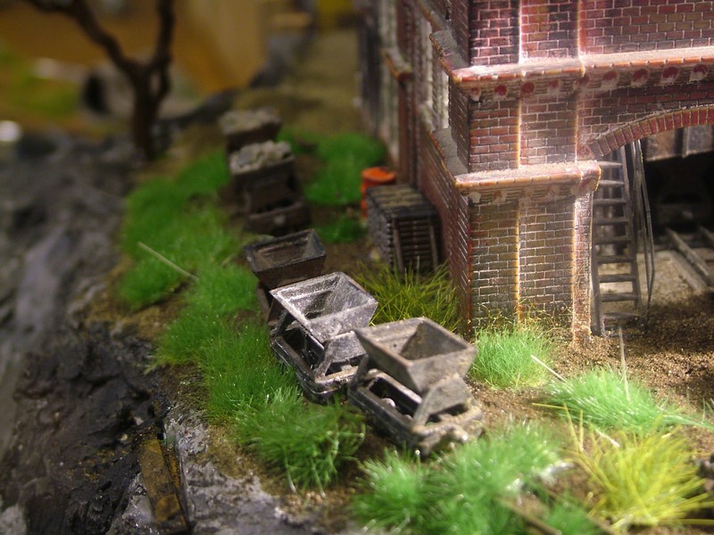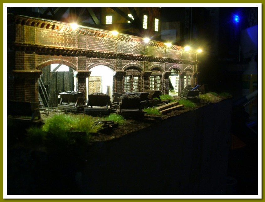 Nem tudom, hogy az üzemi épület belső világítása csak itt, a fotón ennyire világos, és hideg fehér-e, vagy a valóságban is, de ha a valóságban is ilyen, akkor inkább cseréld ki a LED-eket (gondolom, azokkal készítetted) sárgára, vagy legalább meleg fehérre, mert így olyan, mintha villám világítaná be a helyiséget. Egyébként gyönyörű munkák! A bánya lejárat kifejezetten tetszik, nagyon ötletes és szép!) |