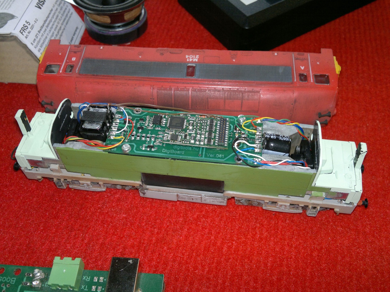 Traxx: a Tillig legtöbb ilyen mozdonya (nagyobb dízelek, villanygépek) PLUX12 (NEM658) dekóder aljzattal szereltek, így a független zárfény kapcsolás gyárliag megoldott, ha ilyen dekóder van benne. Még egy reflektor is kapcsolható. Ezzel nekem nem kellett vesződnöm, csak a dekódert megfelelően bekötni, mert ugye a PLUX12-ben nincs hangdekóder elvileg. (Lehet, hogy lesz, mert a Tran SL76D-t alkalmassá lehet erre tenni, már beszéltem a gyártóval erről, mindkettővel.)