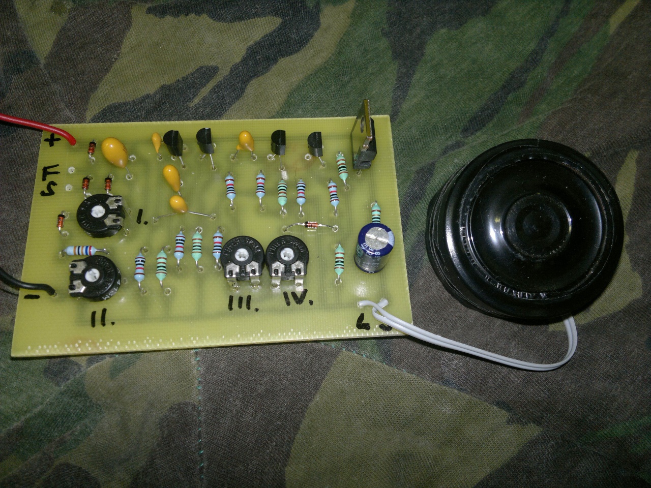 Egy 23mm-es hangszórónak és egy kondenzátornak kellett helyet faragni bele!