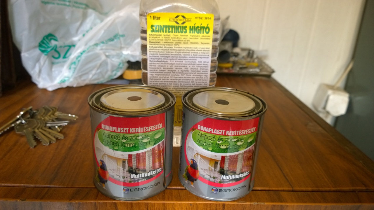 Selyemfényű matt zománcfestéket szereztem,barnát és feketét.(Váltógyártó 4:3 arányban ajánlotta.)