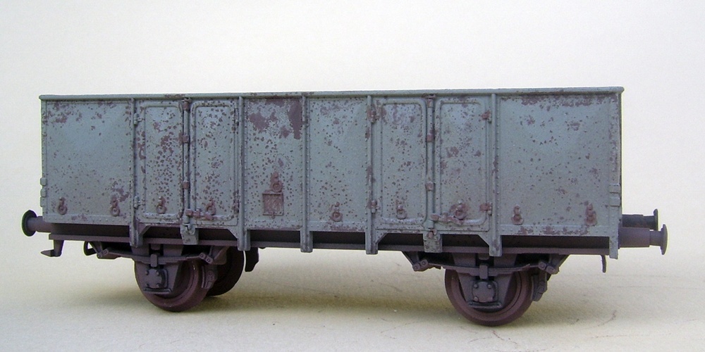 Itt van egy példa: ez a vagon is Revell festékkel készült. Ráadásul van egy alapszíne, plusz egy fedőszín rajta. Magyarul két komplett festés egy modellen, és még mindíg nem tűnt el róla egyetlen szegecs, zár, vagy sarok sem. Ezt Cellkolorral nem lehet megcsinálni. Bár még nem próbáltam  |